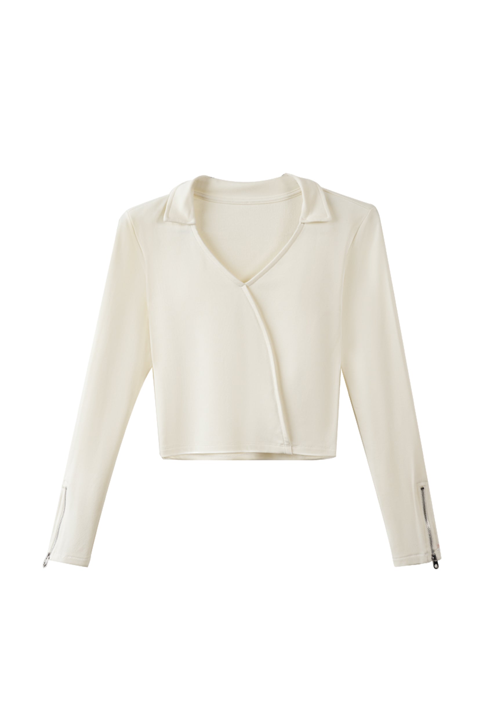 Add a modern twist to your wardrobe with this sleek Nikita cropped top. Featuring an asymmetrical wrap front and minimalist collar, it exudes effortless elegance. The zipper detailing on the sleeves adds an edgy touch, while the soft, stretchable fabric ensures both comfort and versatility.