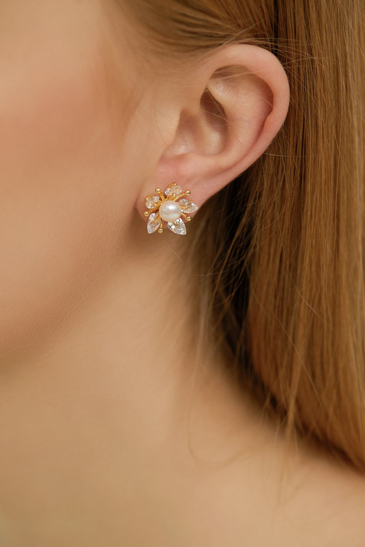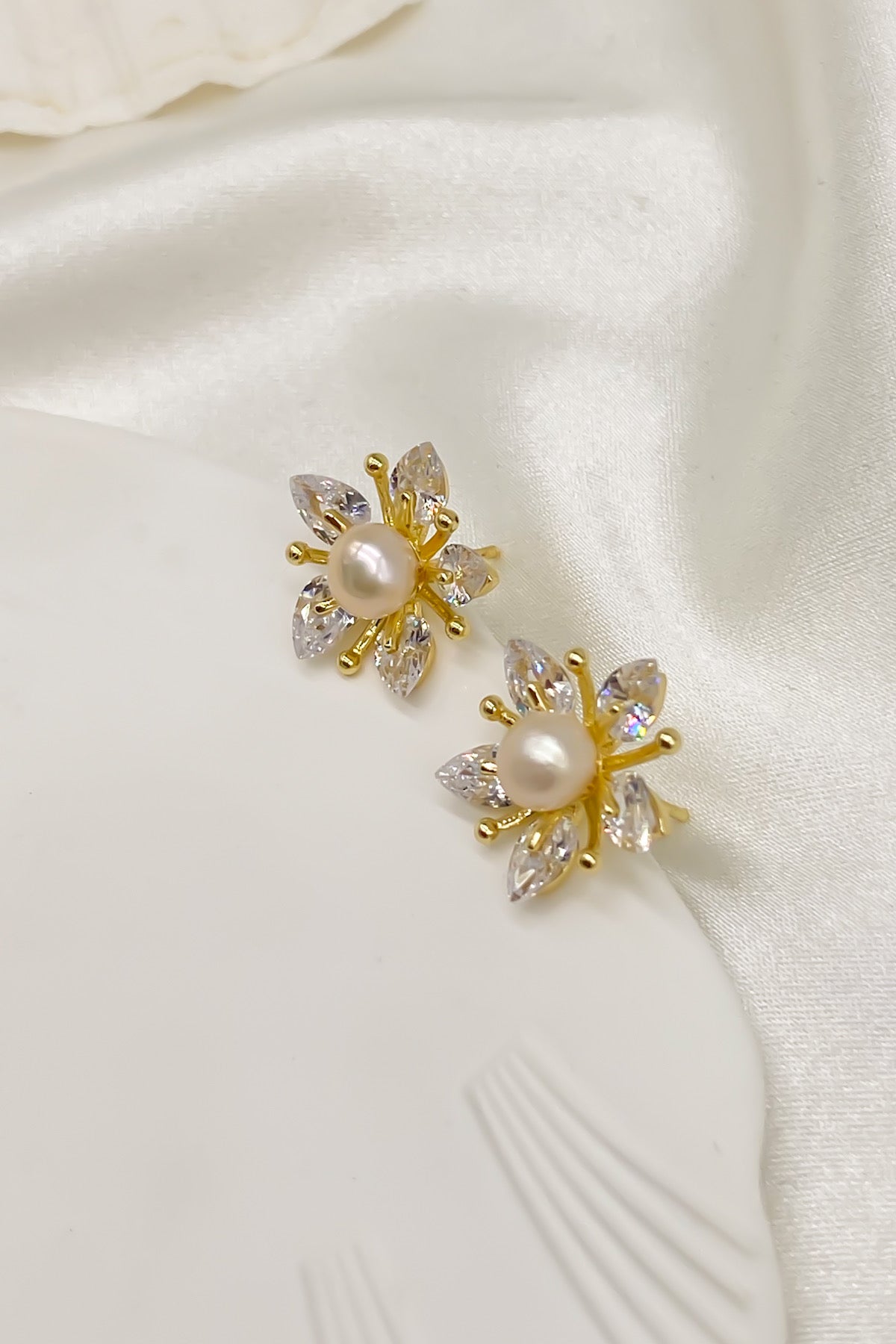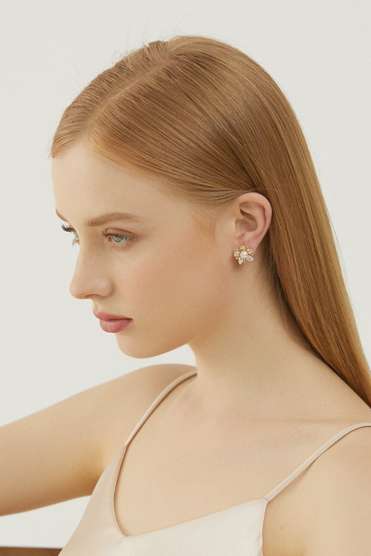 SKYE Shop Chic Modern Elegant Classy Women Jewelry French Parisian Minimalist Angelica Gold Pearl Sakura Flower Stud Earrings