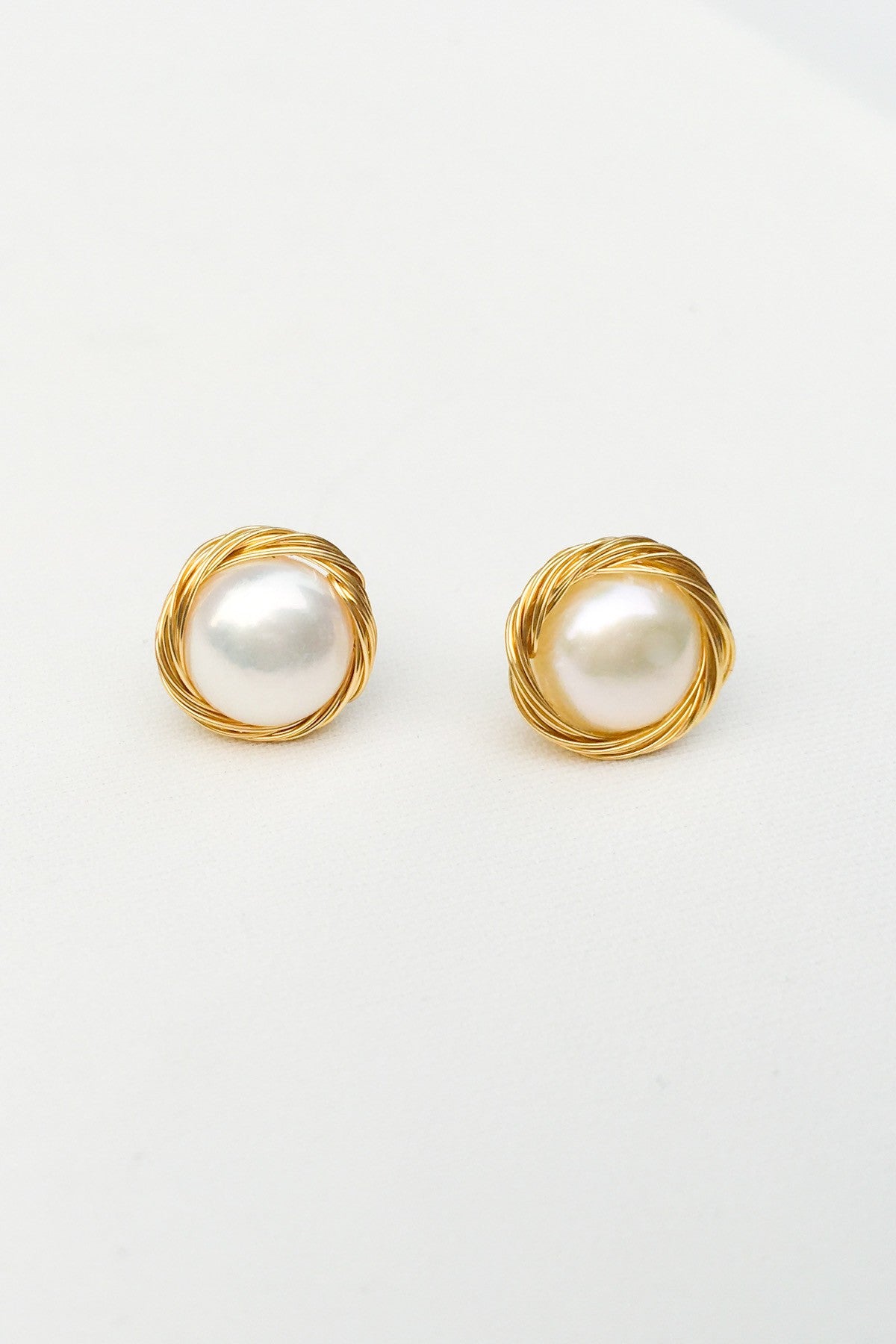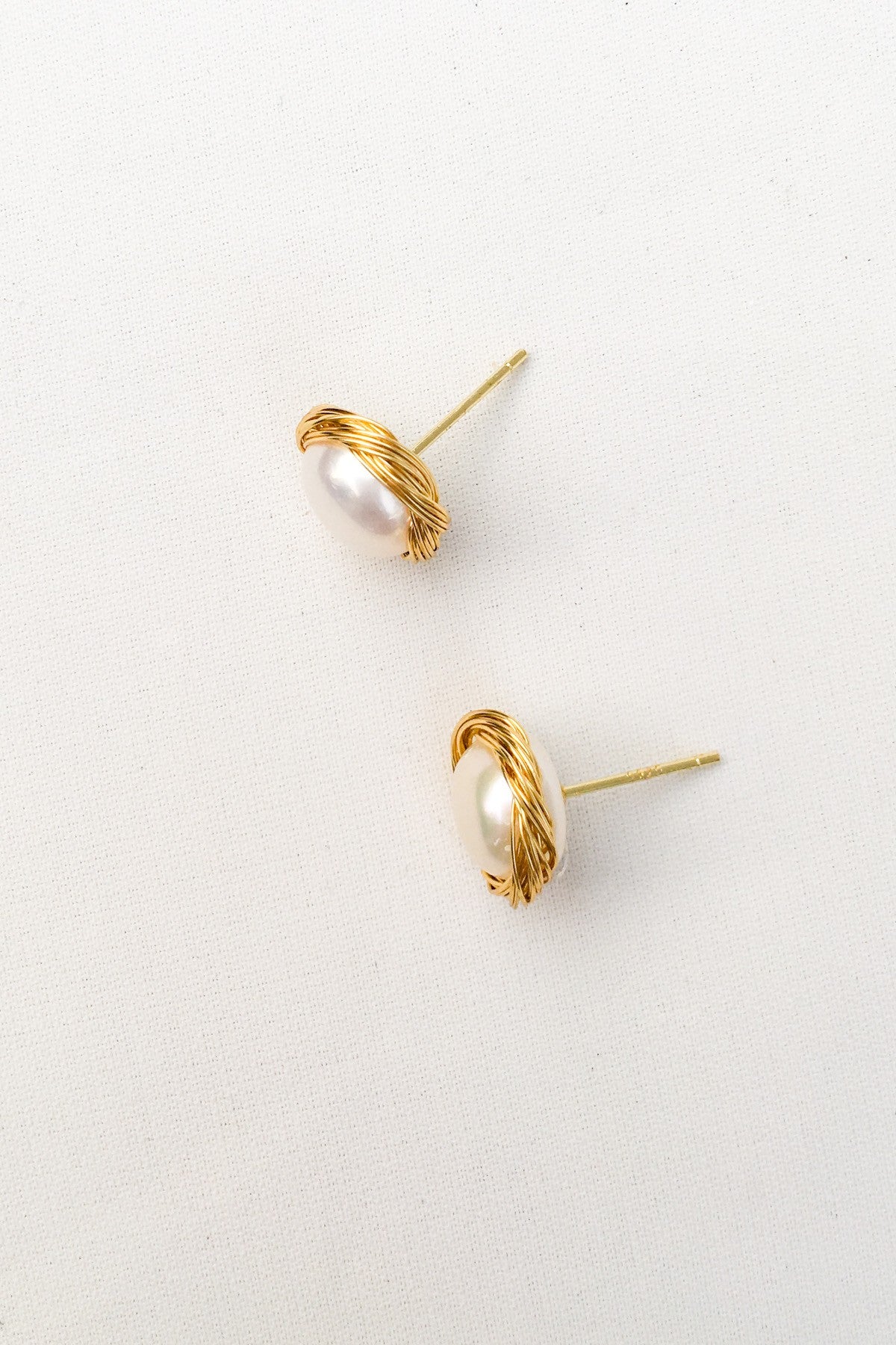 Bring understated glamour to your jewelry edit with our beautiful Aadi Earrings, featuring exquisite hand-wrapped 18K gold threads and lustrous organic pearls. Wear yours for a classy and timeless look.