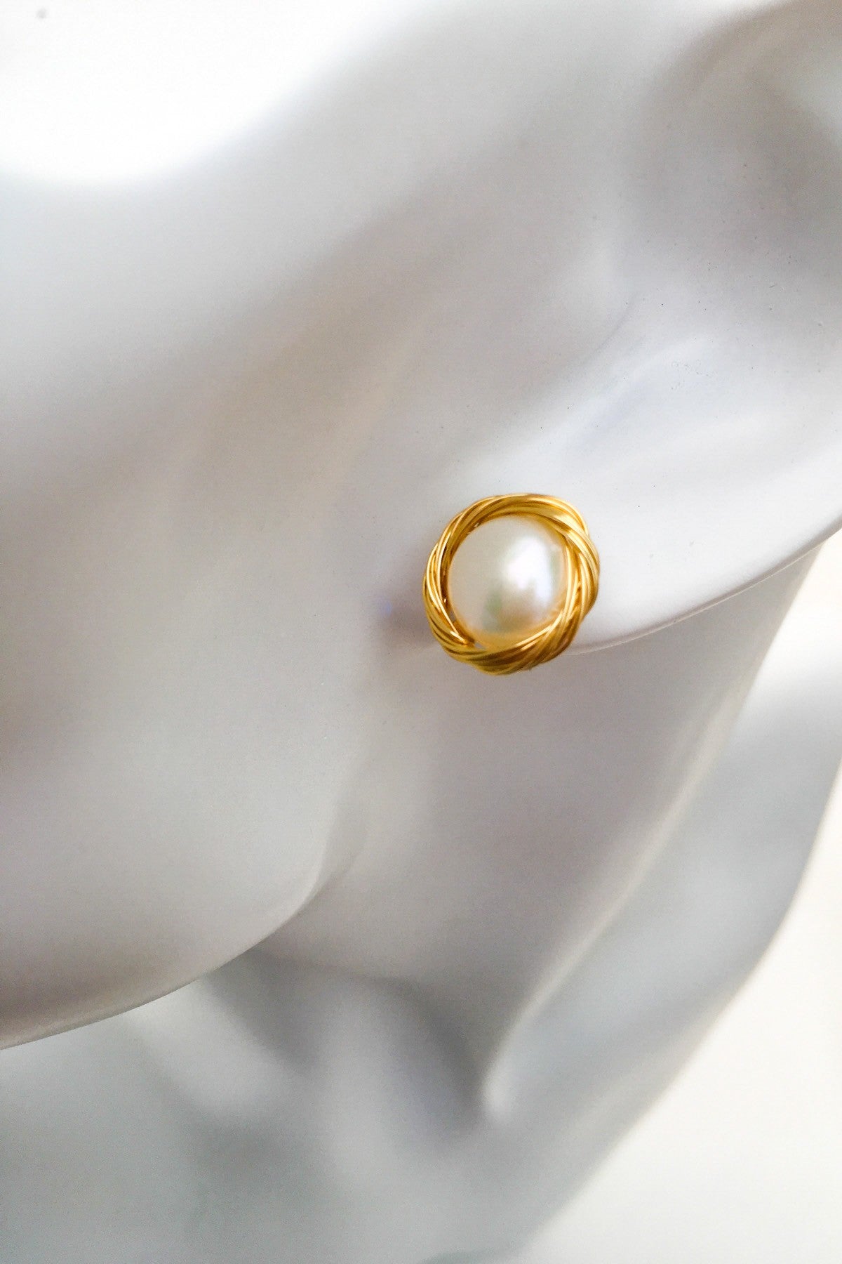 Bring understated glamour to your jewelry edit with our beautiful Aadi Earrings, featuring exquisite hand-wrapped 18K gold threads and lustrous organic pearls. Wear yours for a classy and timeless look.
