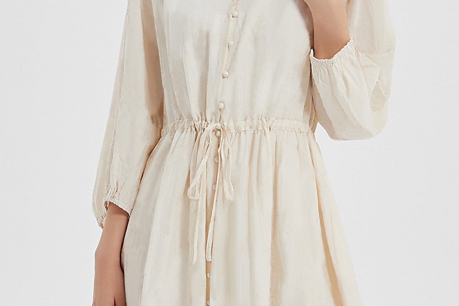 Anastasia Drawstring Puff Sleeve Midi Dress