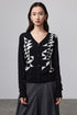 Refresh your style with this geometric patterned cardigan. Featuring a button-down front and striking triangular designs, this piece combines bold aesthetics with comfort. Its minimalist color scheme makes it a versatile addition to any wardrobe.