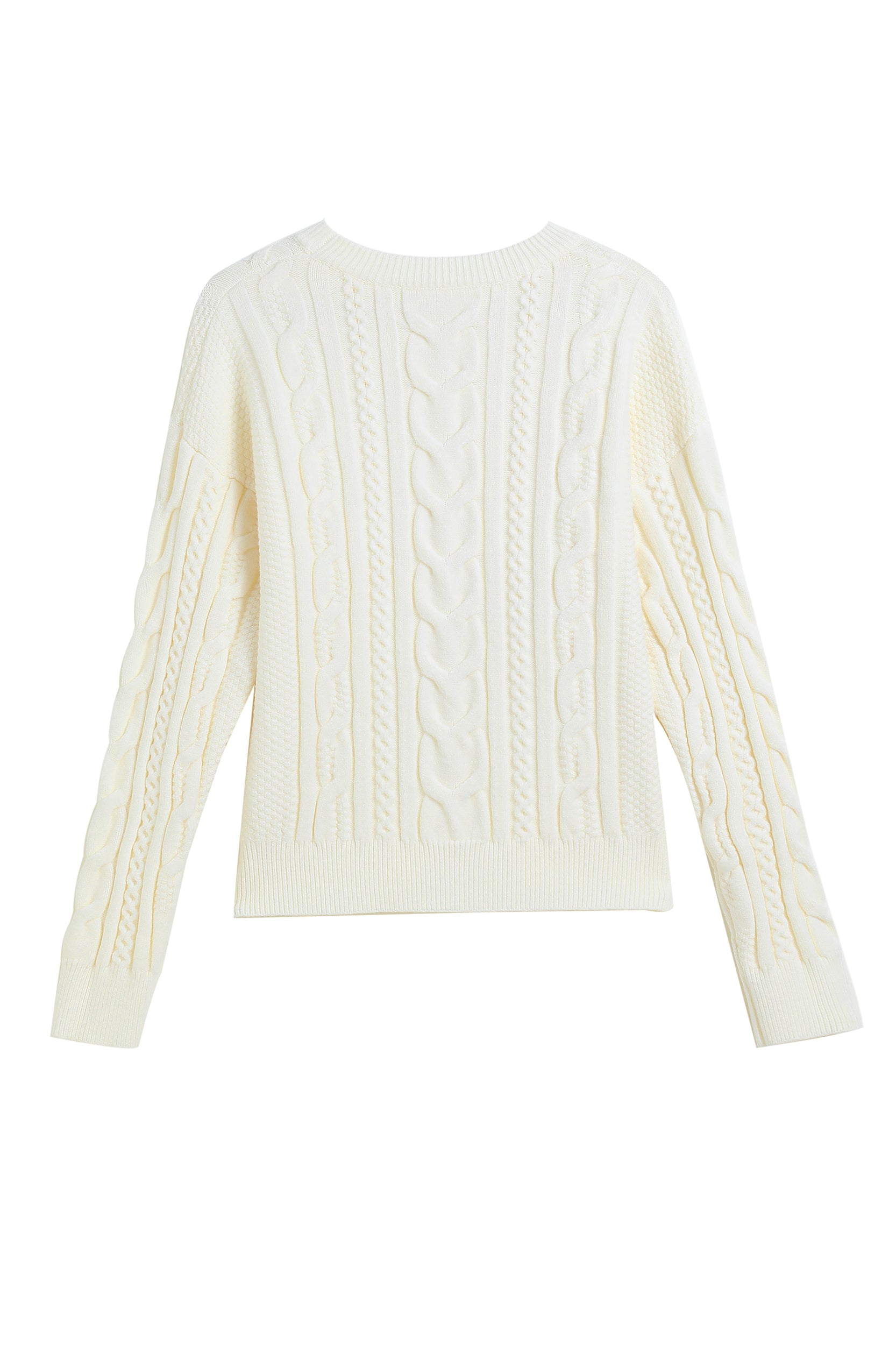 Embrace the cozy charm of this cable-knit Joelle sweater. Featuring a timeless cable-knit design and a relaxed fit, it provides warmth without compromising on style. The soft fabric ensures comfort, making it ideal for cool weather layering or standalone wear.