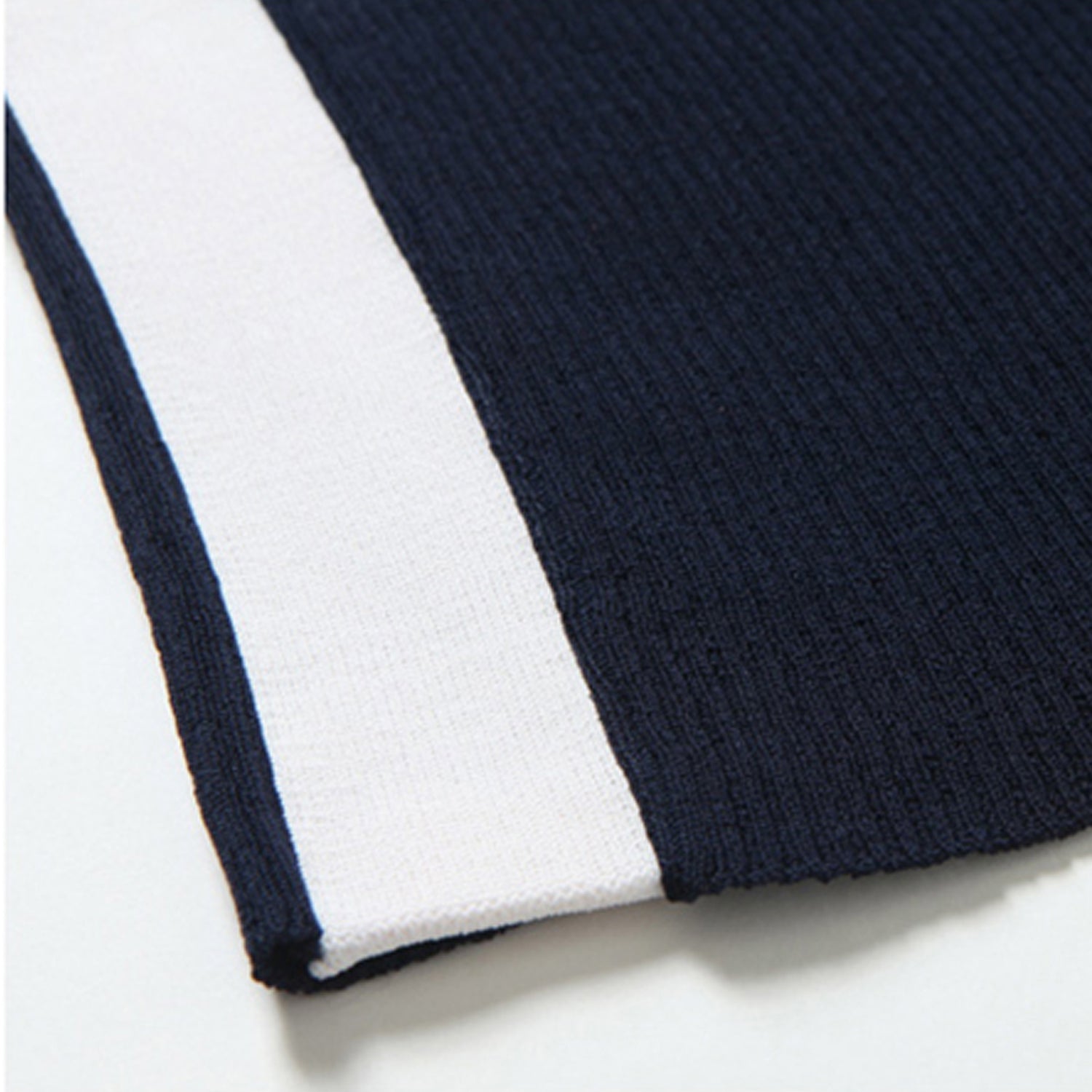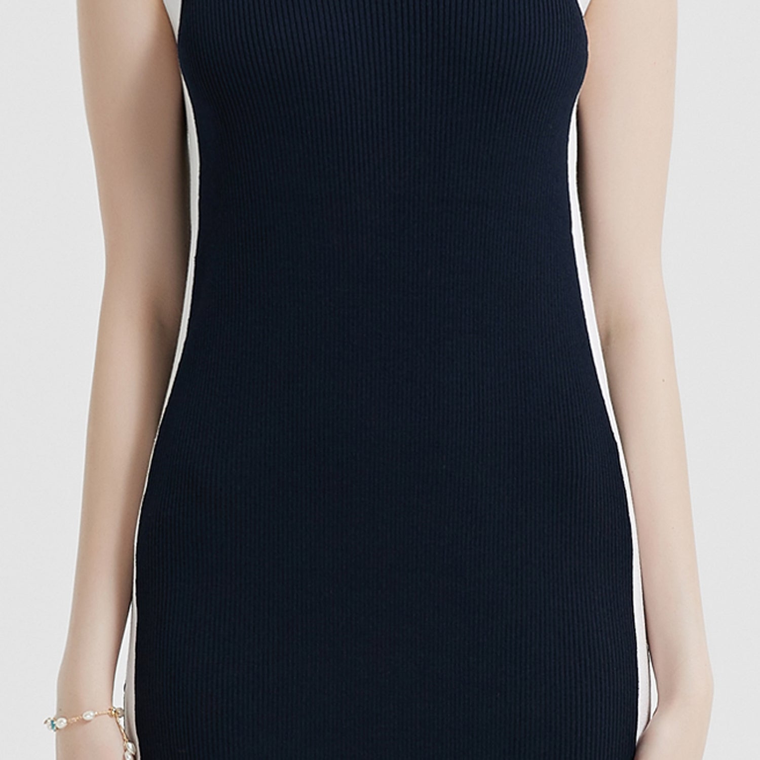 Indulge in figure-hugging style with our sleek Aega dress, featuring a comfortable stretch knit body with chic contrasting trims on the side.