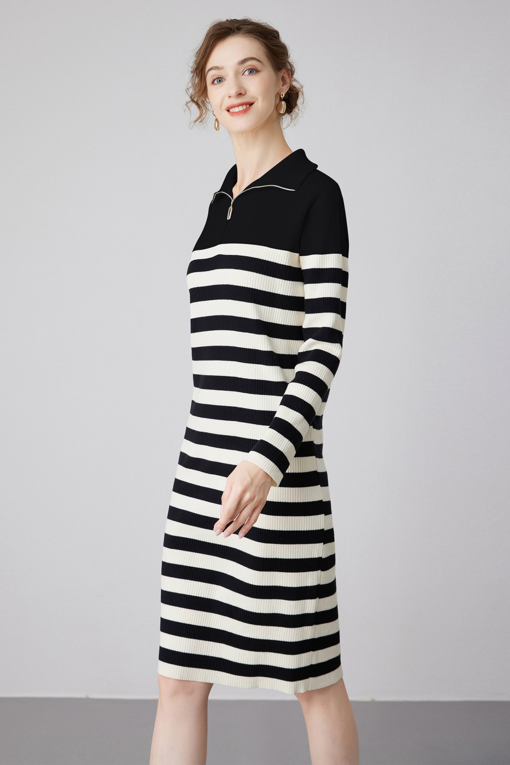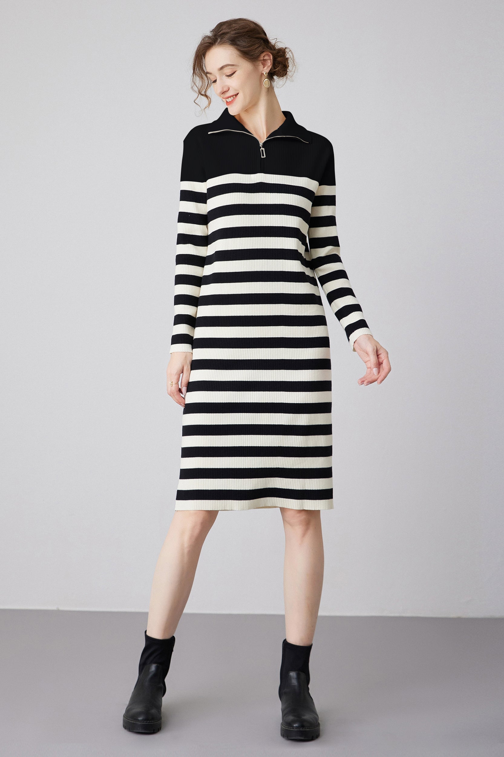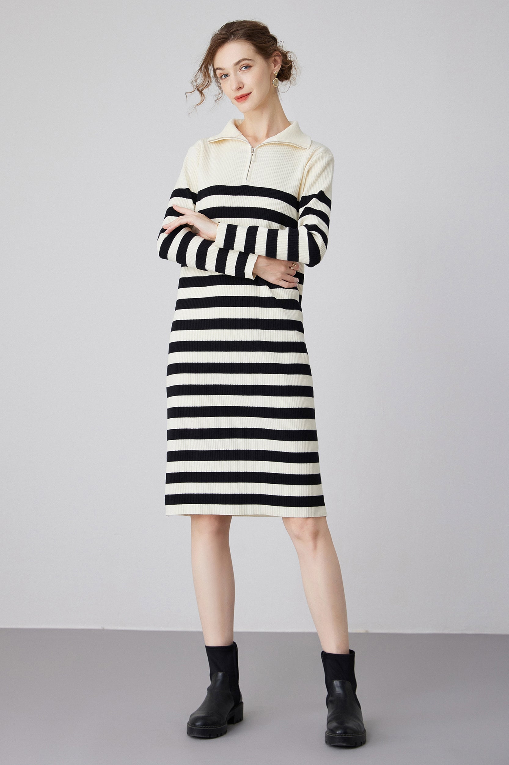Micaela Quarter Zip Striped Knit Sweater Dress