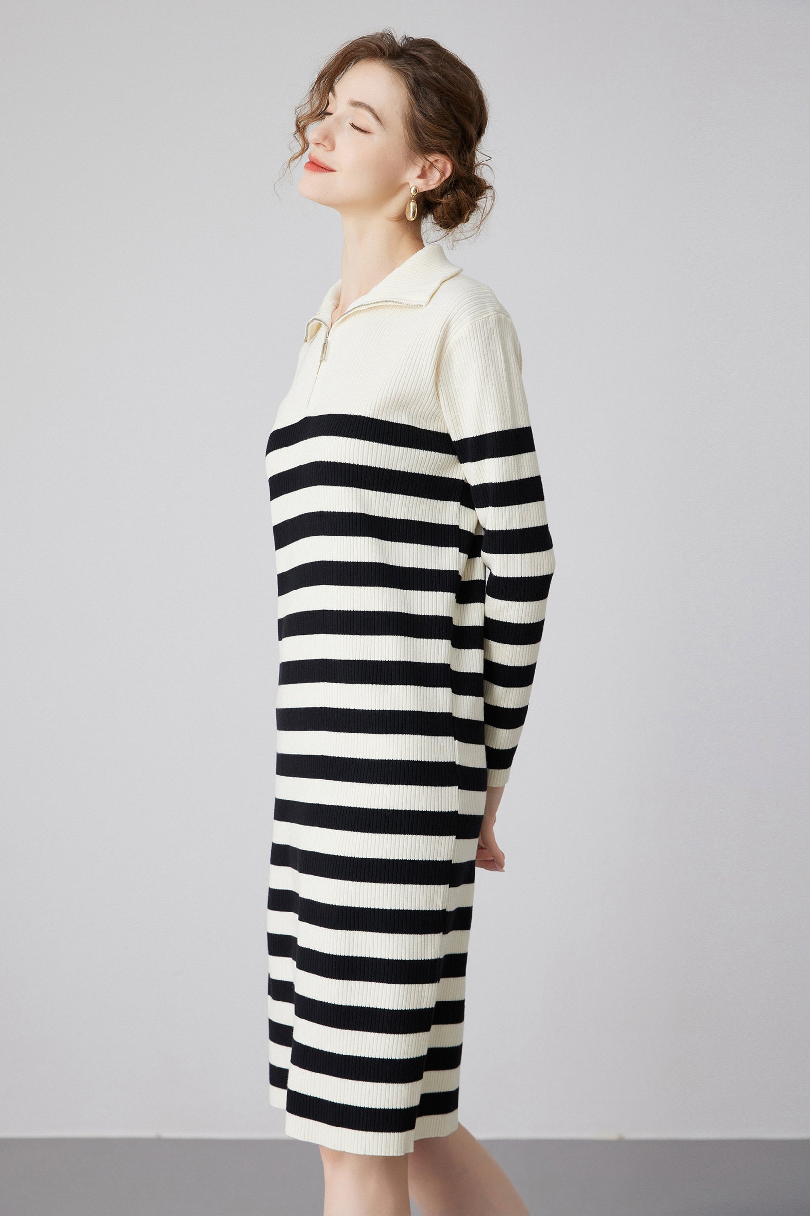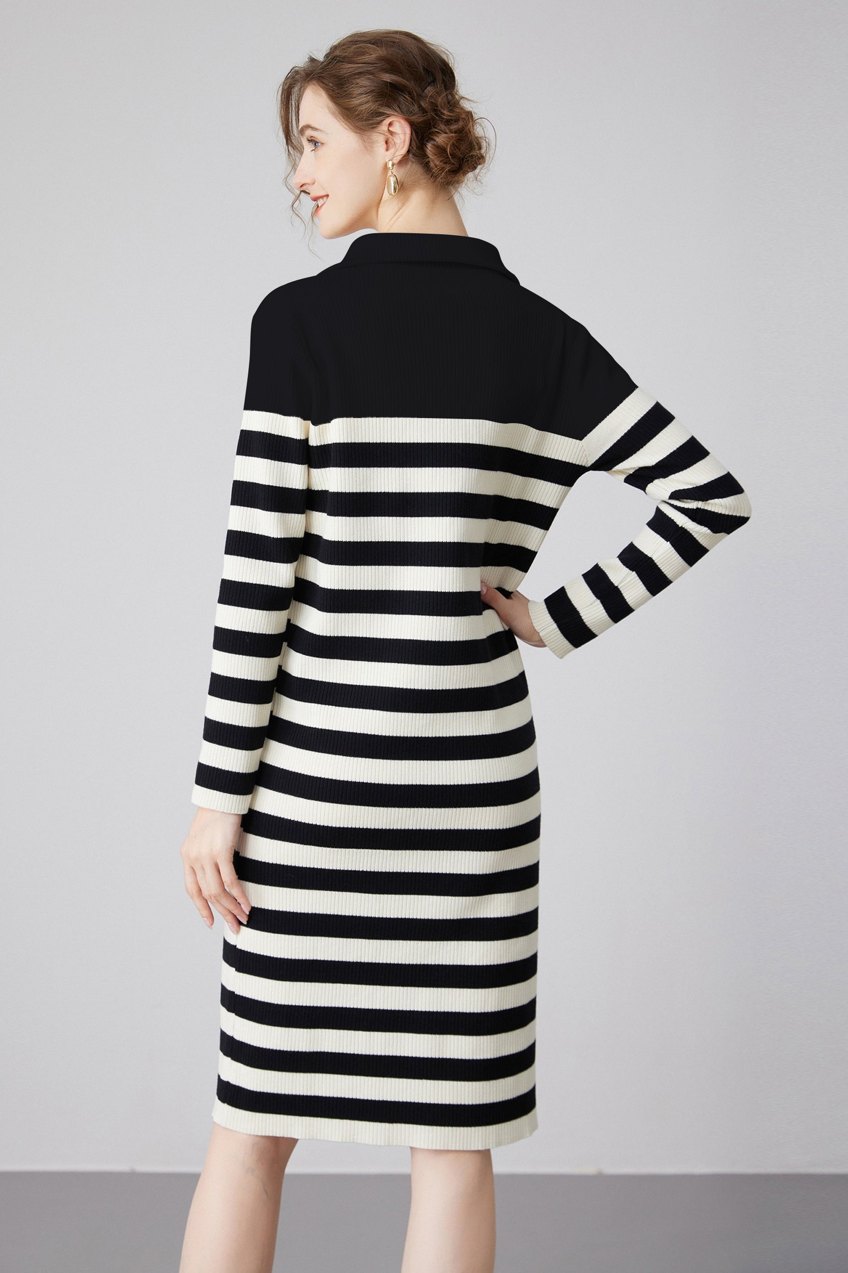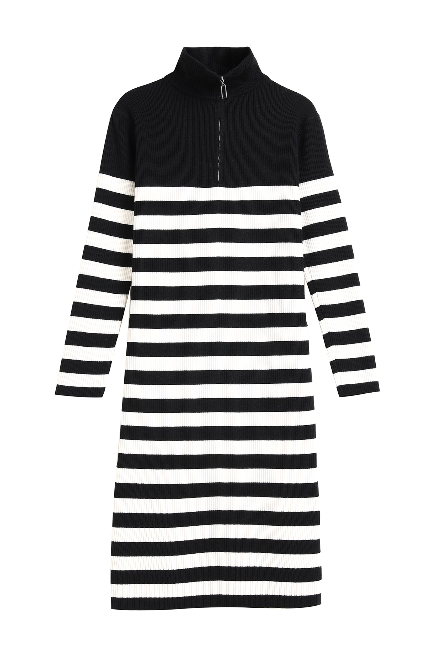 Micaela Quarter Zip Striped Knit Sweater Dress