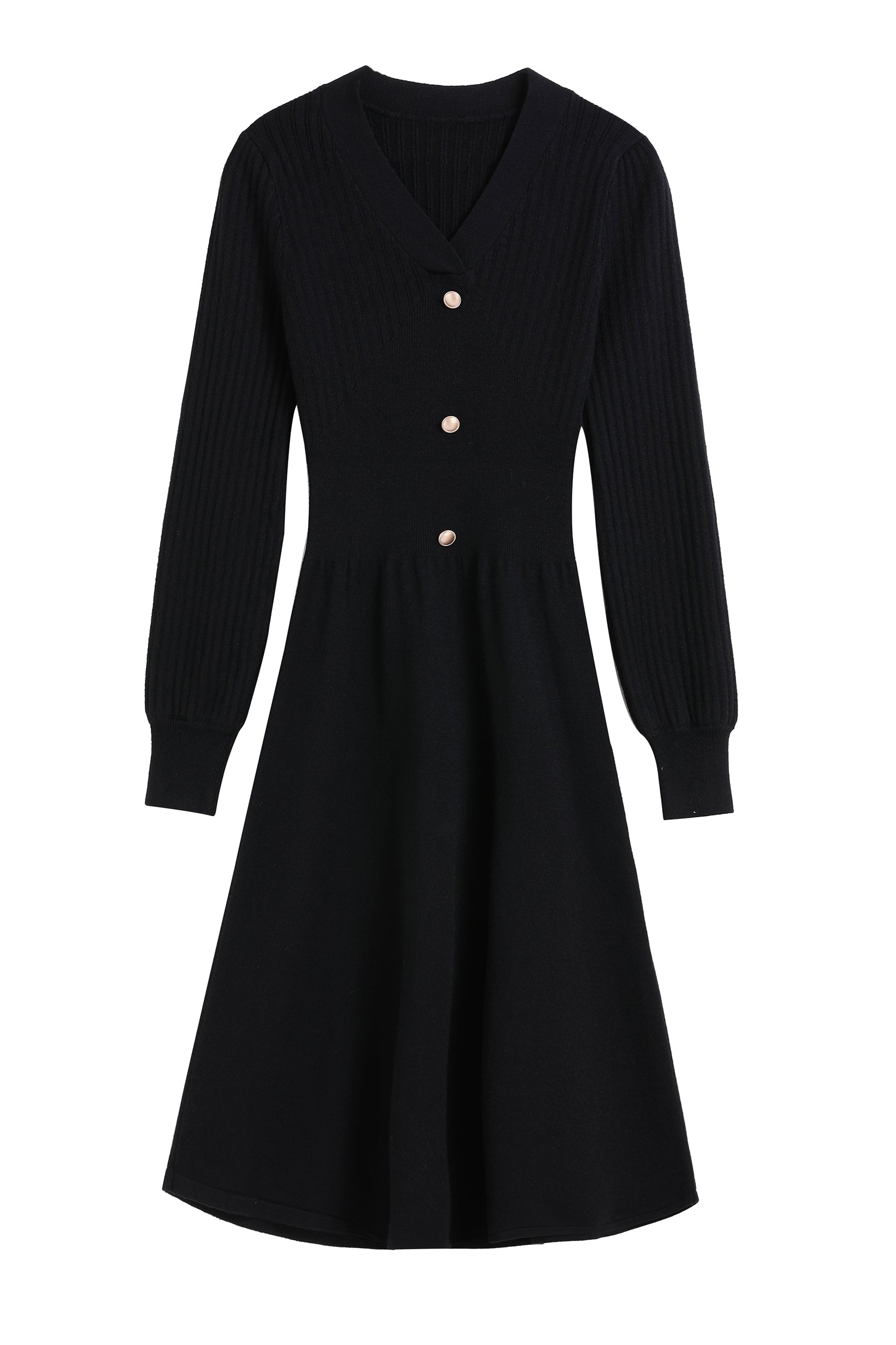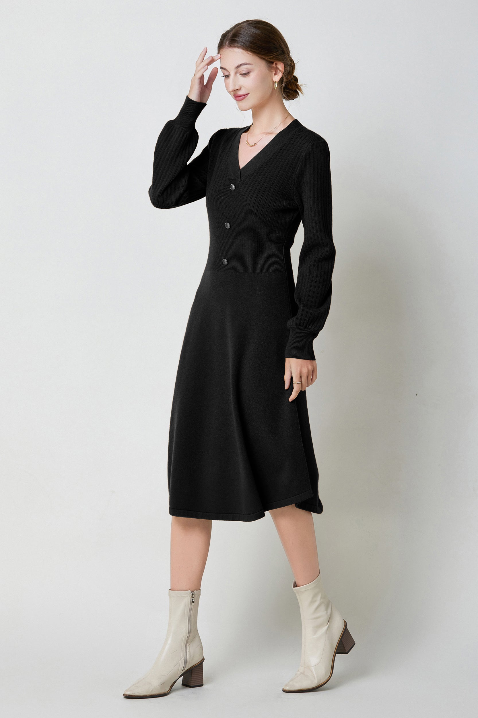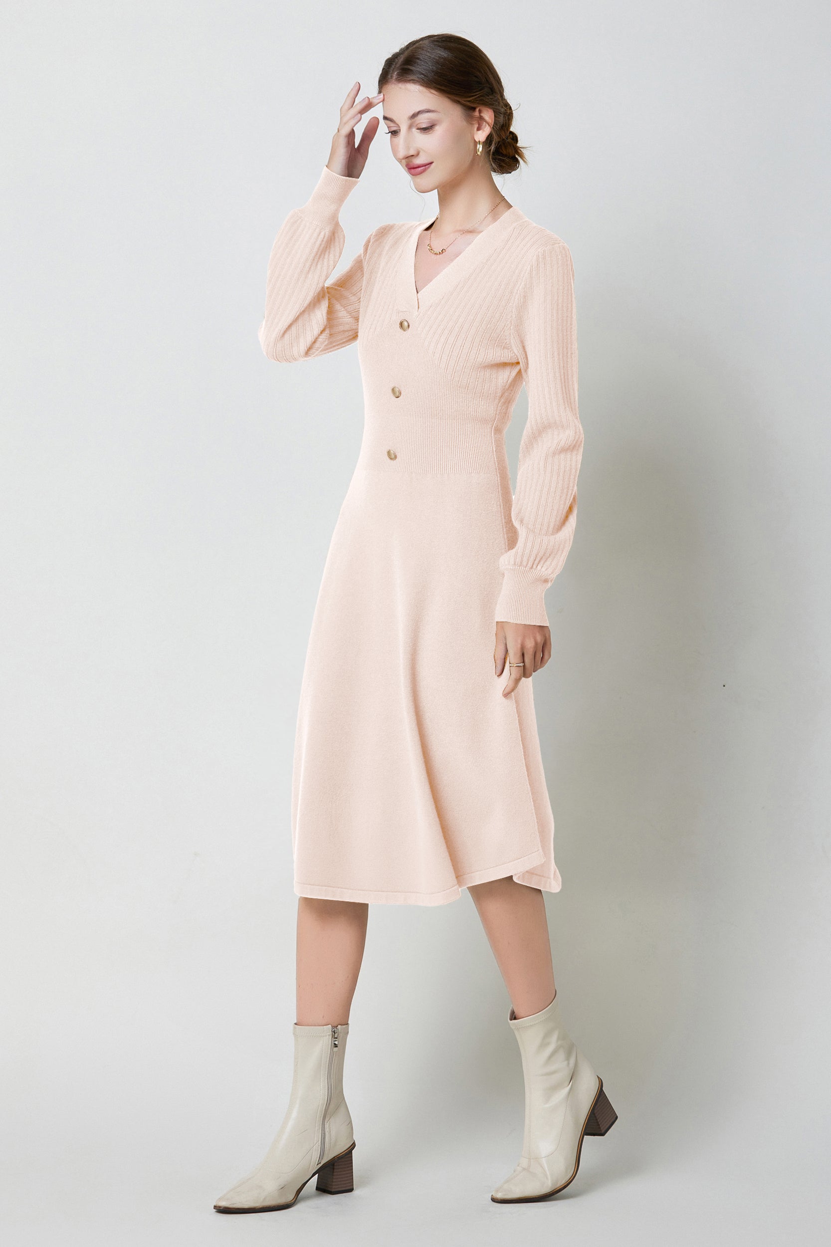 Nicola V-neck Puff Sleeve Stretch Knit Midi Dress