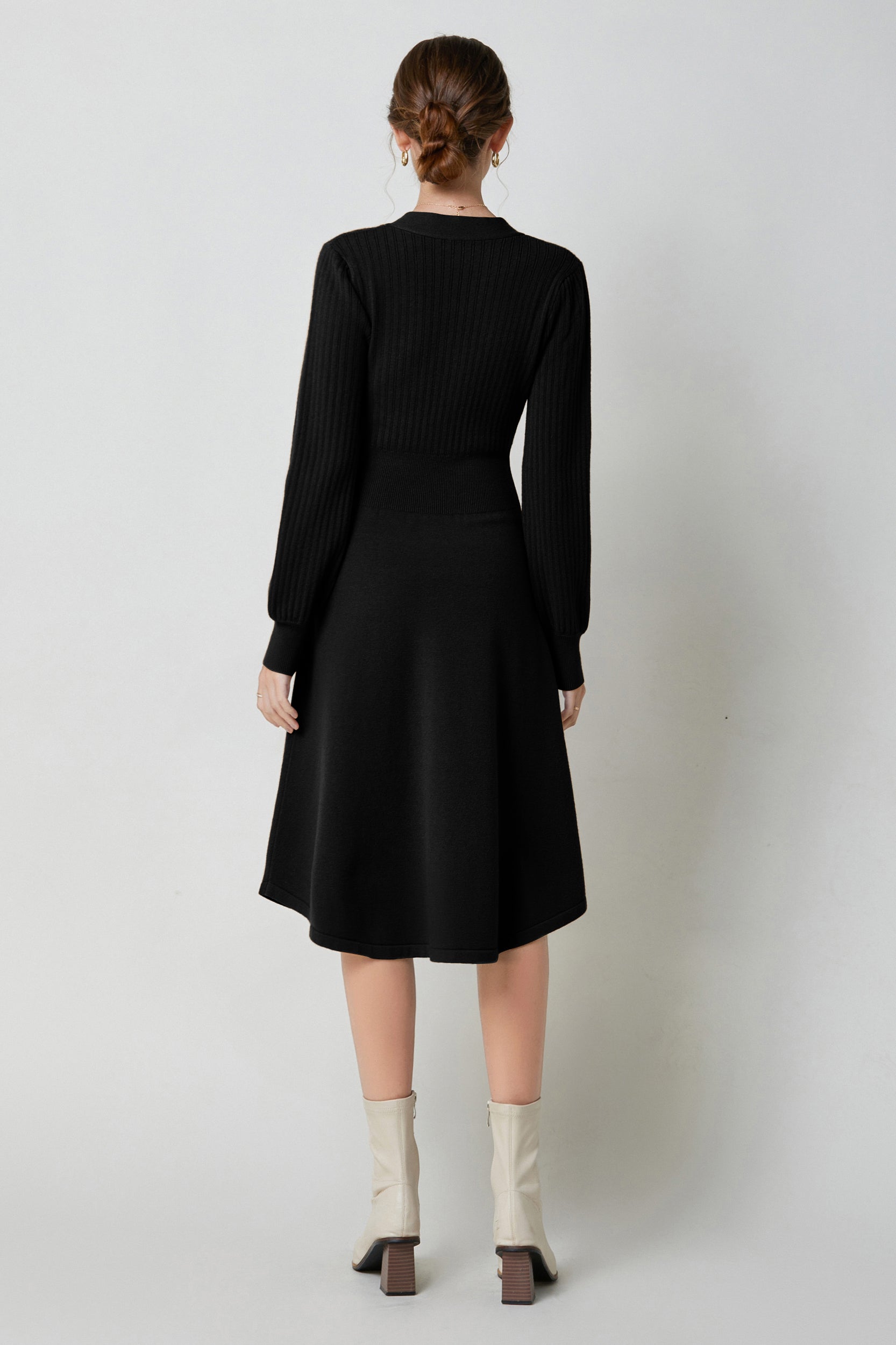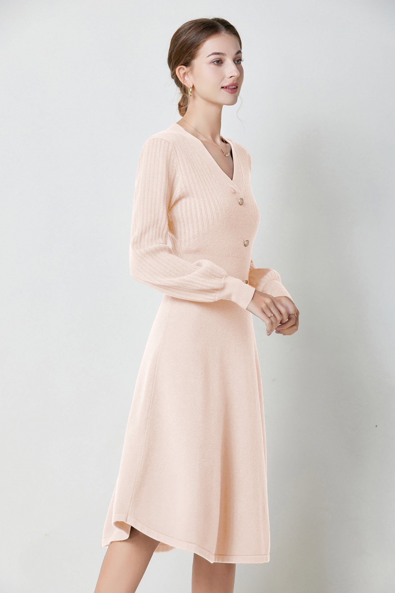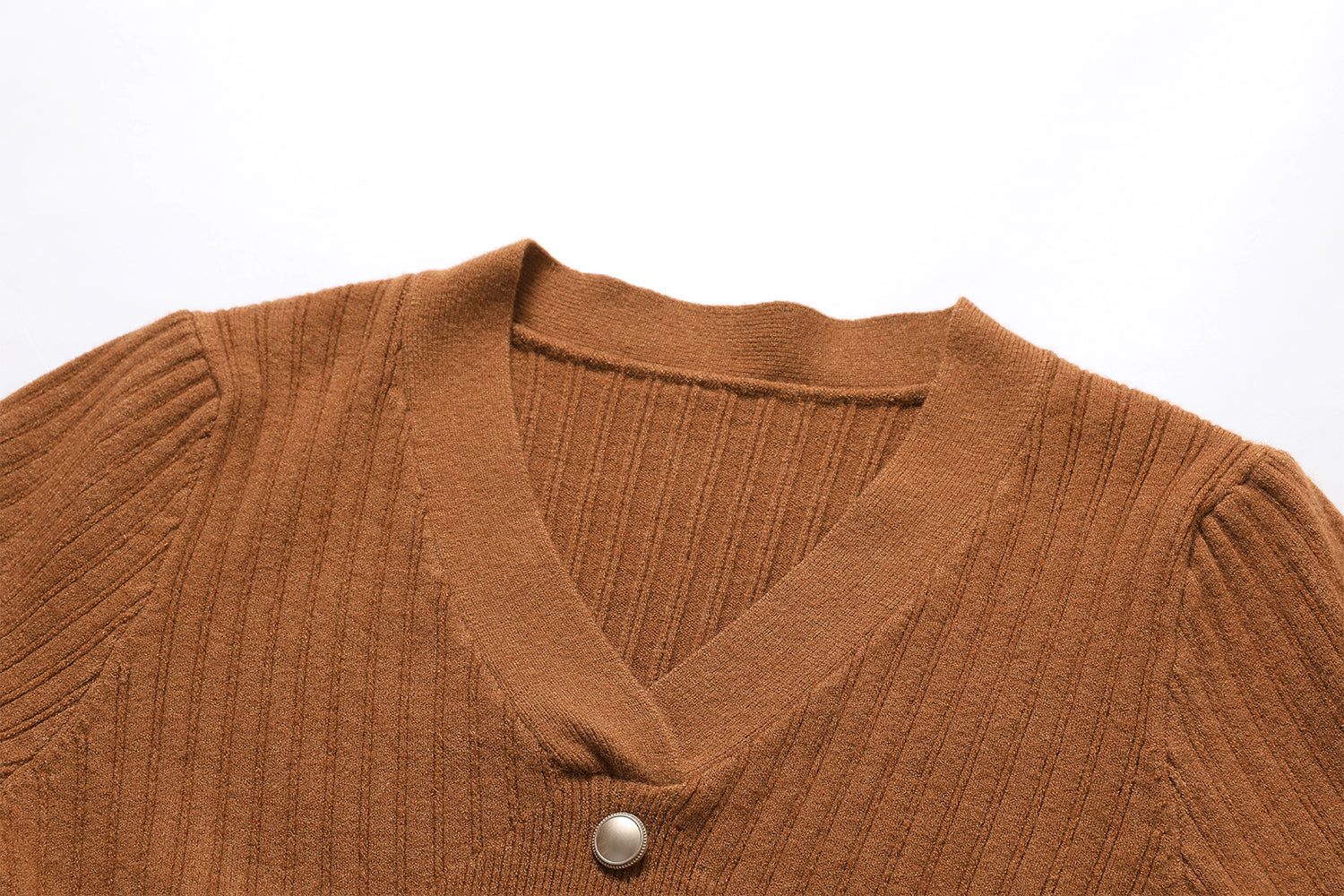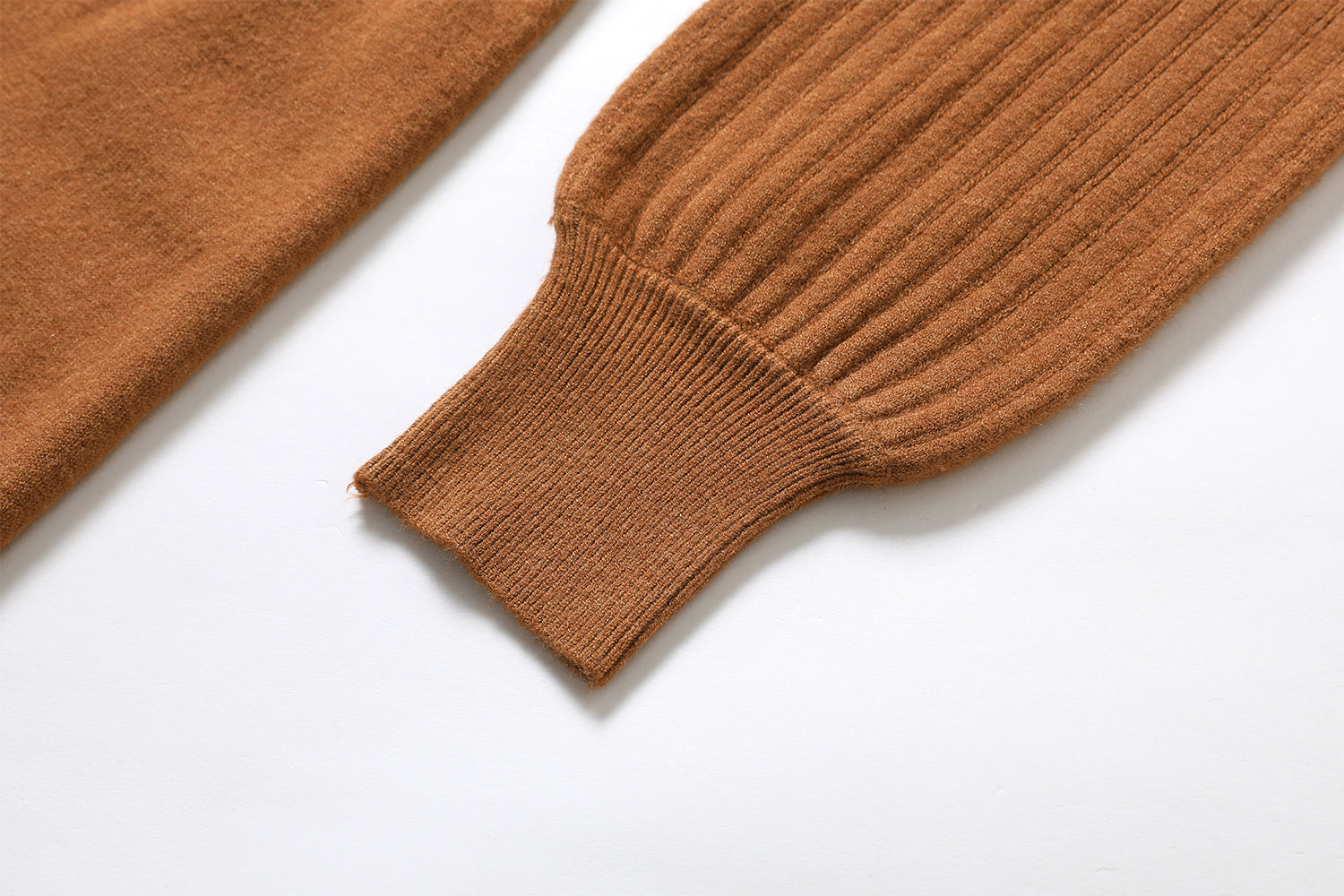 Nicola V-neck Puff Sleeve Stretch Knit Midi Dress