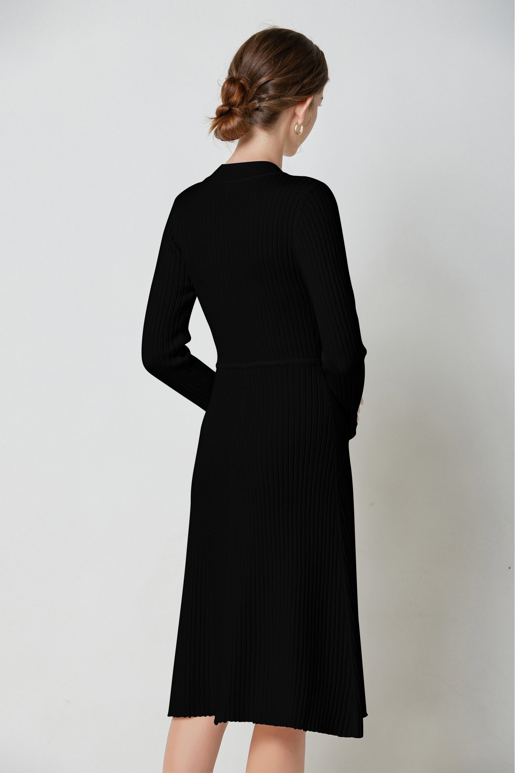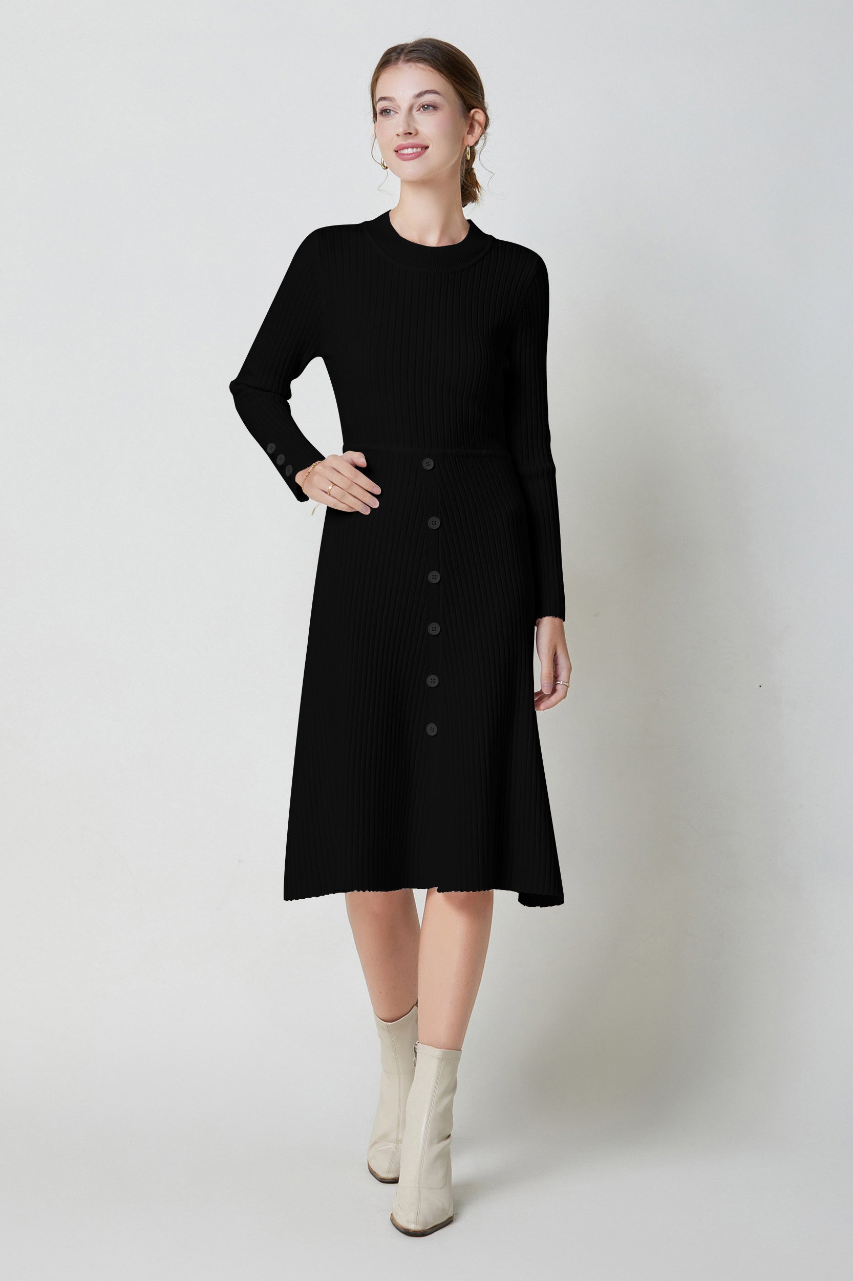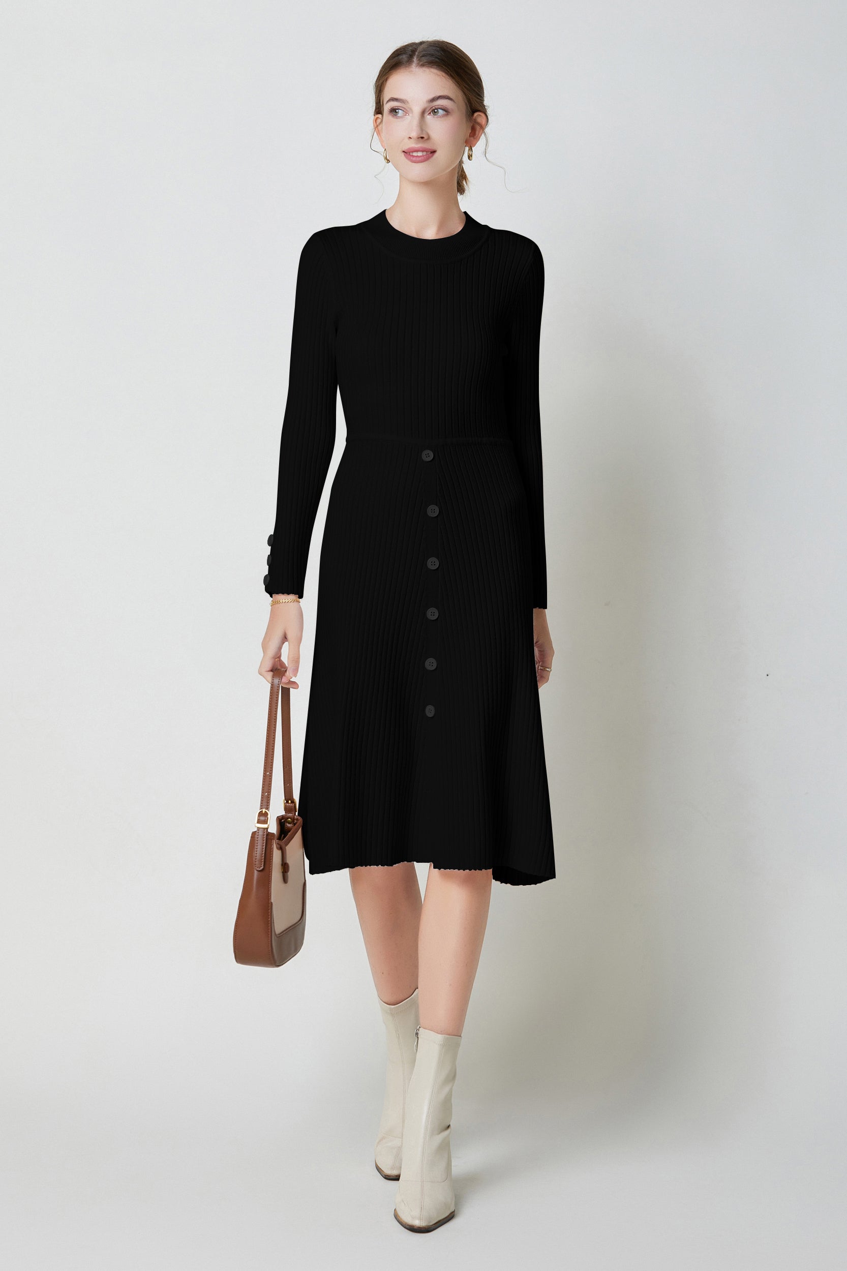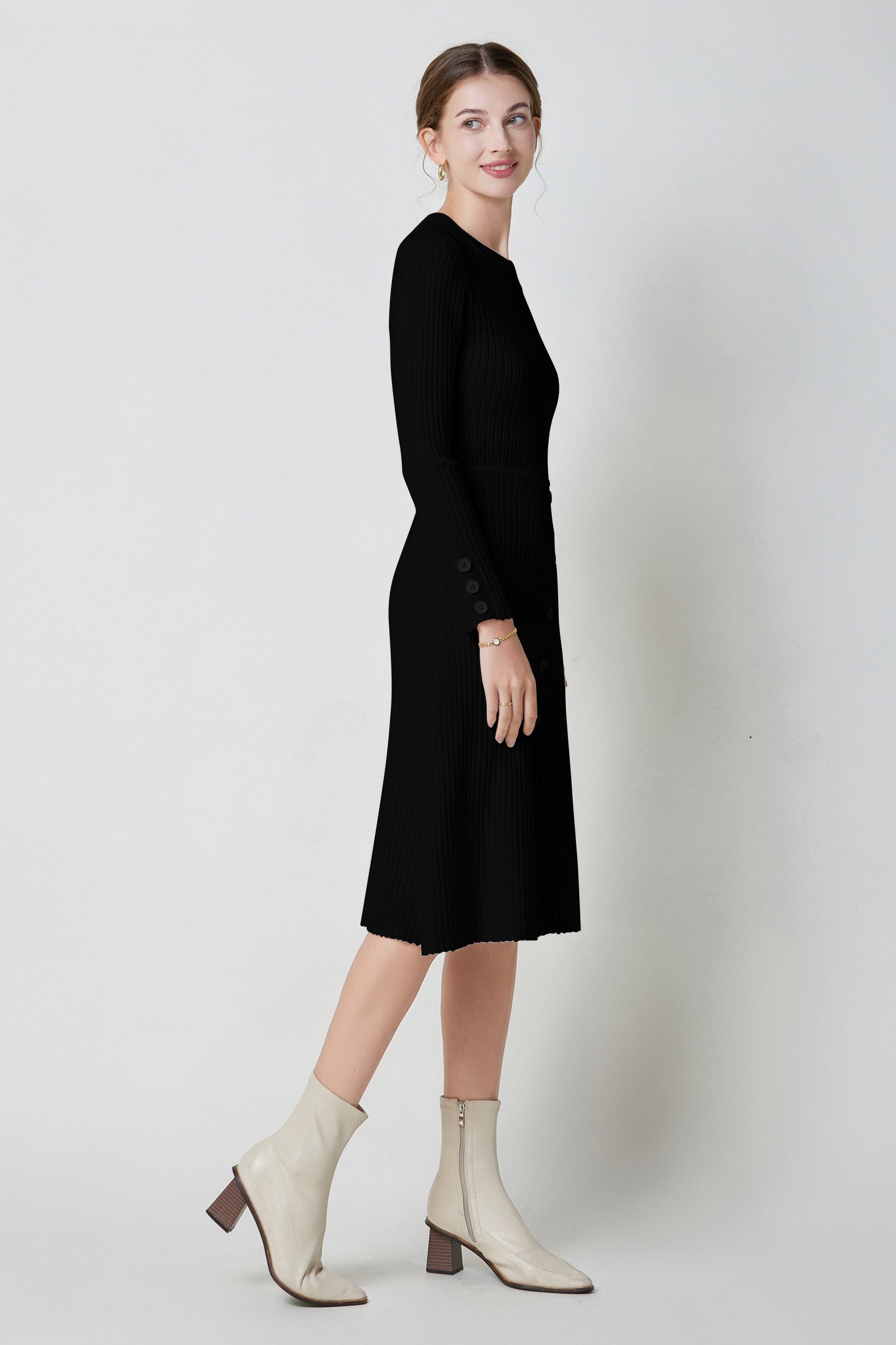 Polly Crew Neck Ribbed Stretch Knit Sweater Dress