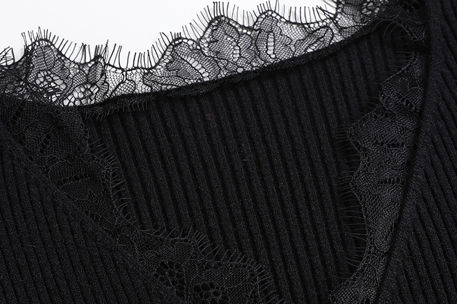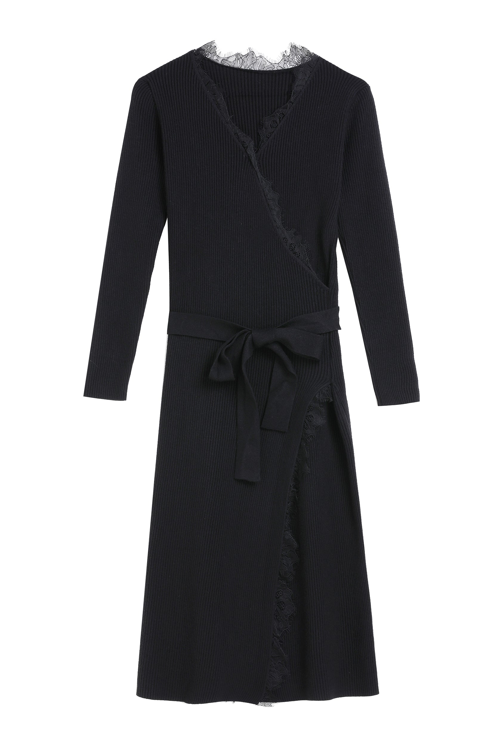 Tatiana V-neck Lace Wrap Knit Sweater Dress