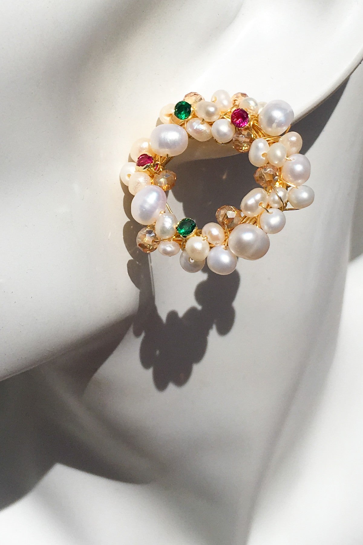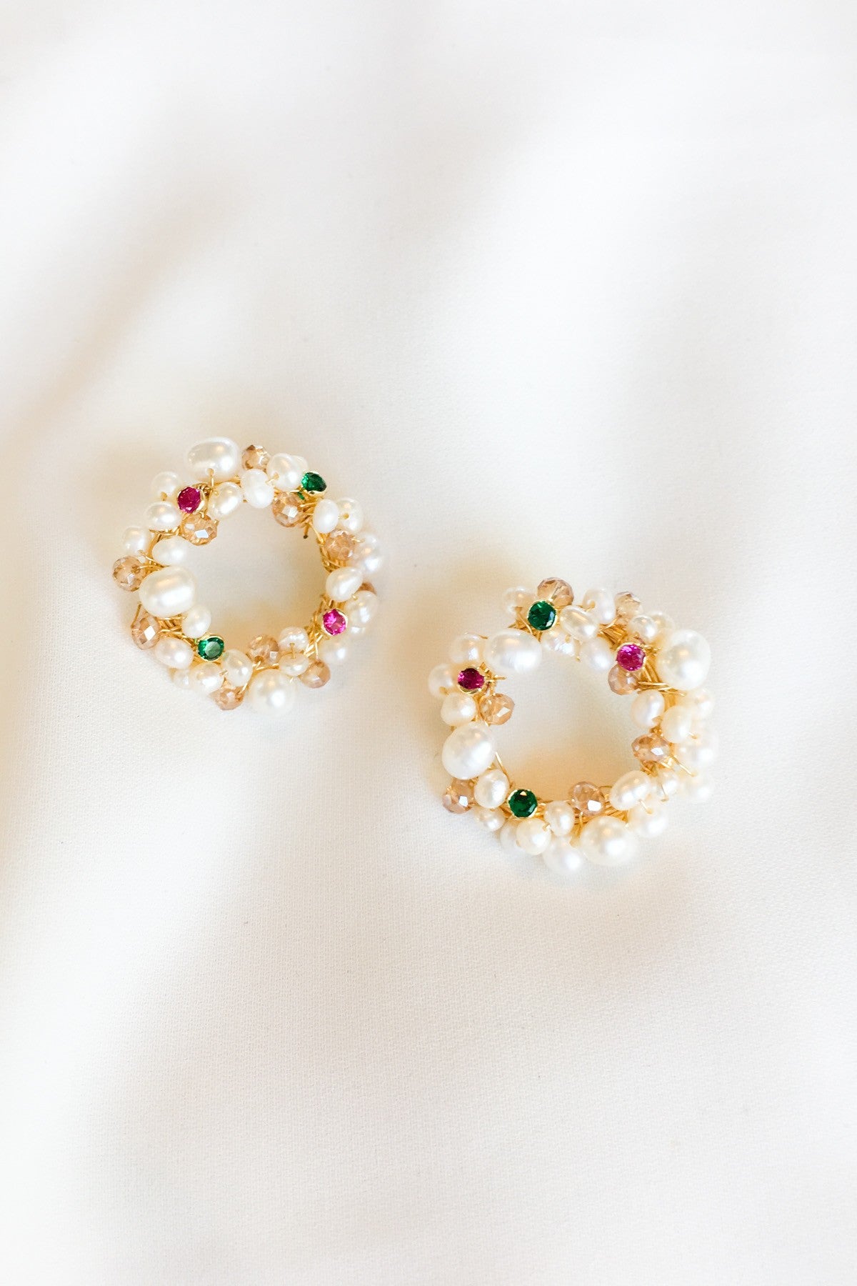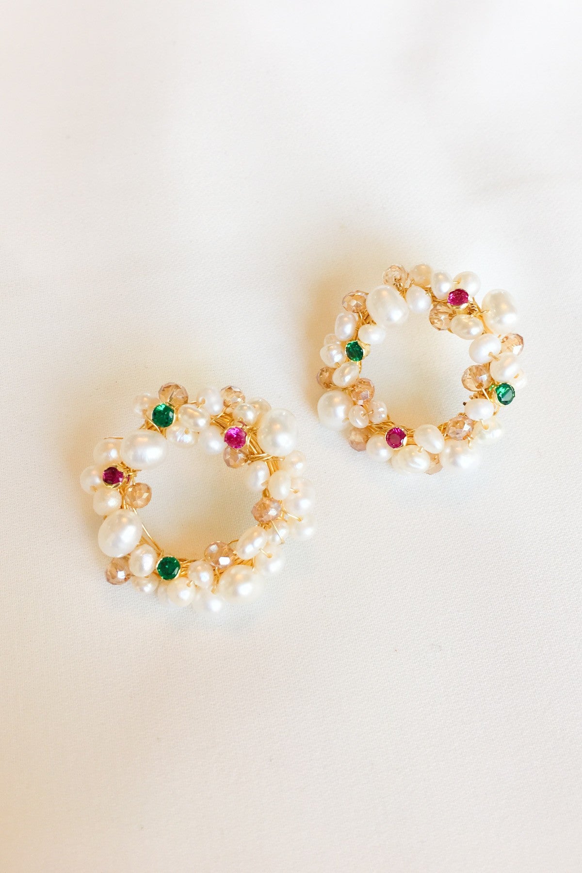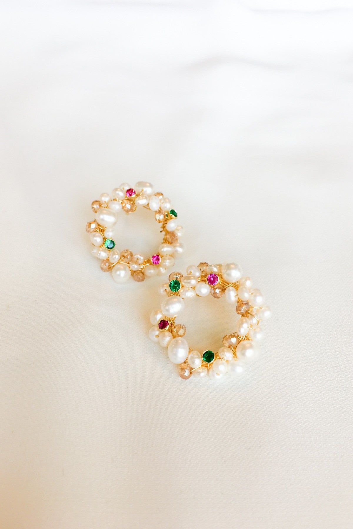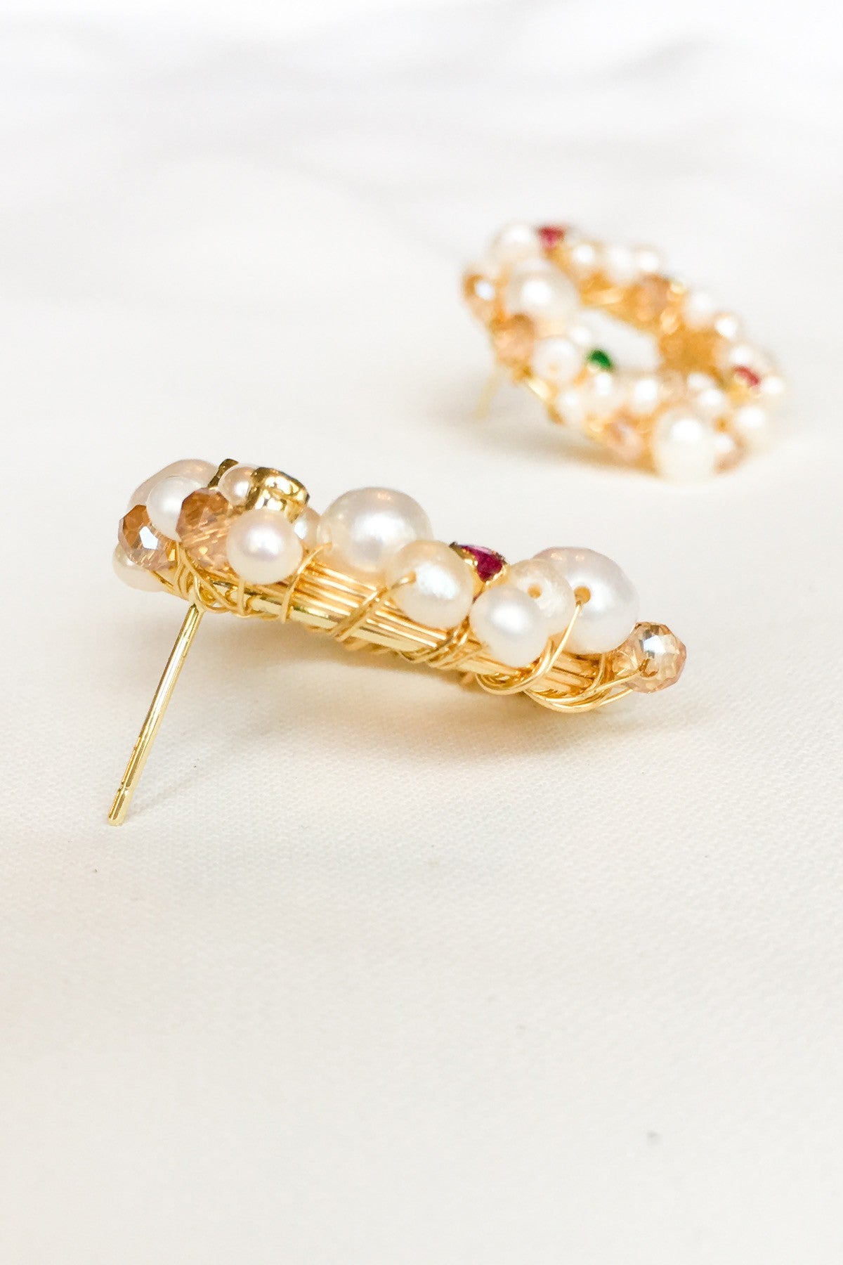 Opt for the refined opulence with our beautiful Oleana 18K Gold Freshwater Pearl Earrings, featuring intricate handwrapped gold threads and lustrous pearls. Add a dose of refined glamour to your everyday with this elevated pair.
