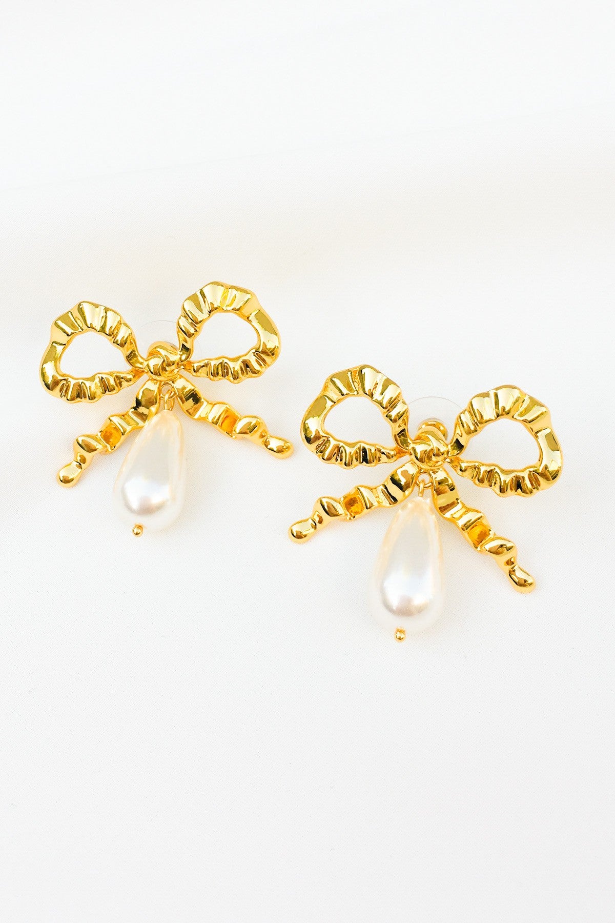 Celebrate modern elegance with our beautiful Anissa 18K Gold Bow Earrings, featuring stunning yellow gold bow details and luminous pearls. As romantic as they are stylish, they'll stand out against swept-back hair and a fitted dress.