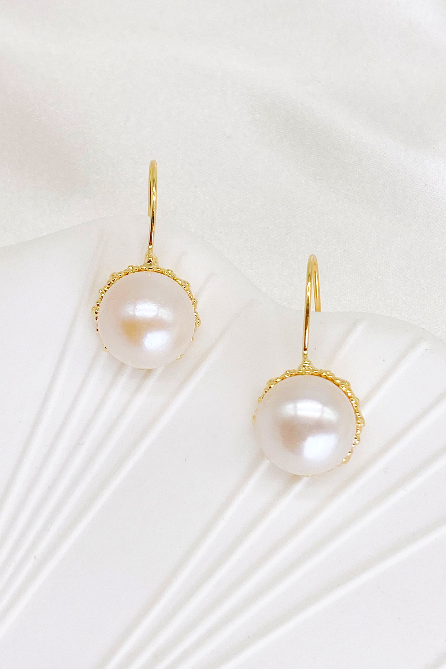 Aoife Gold Halo Freshwater Pearl Drop Earrings