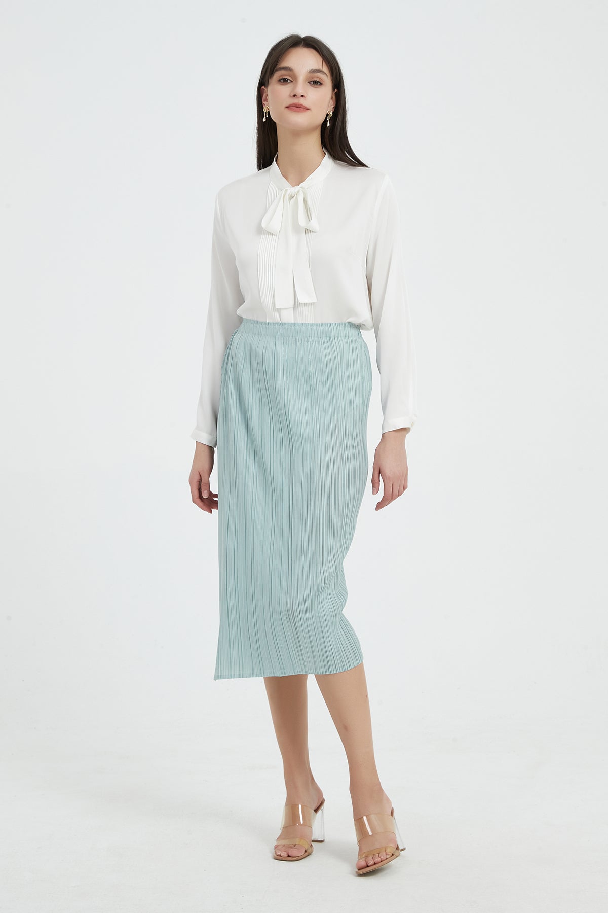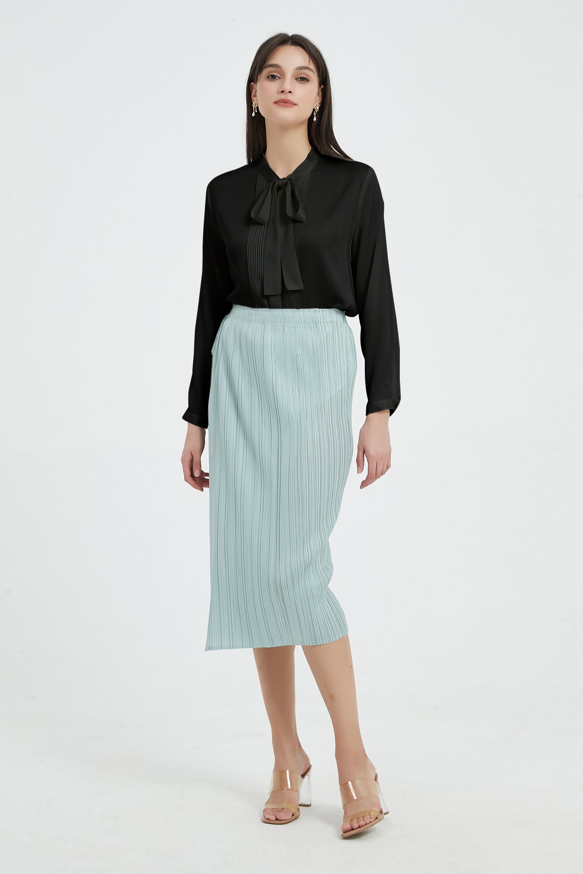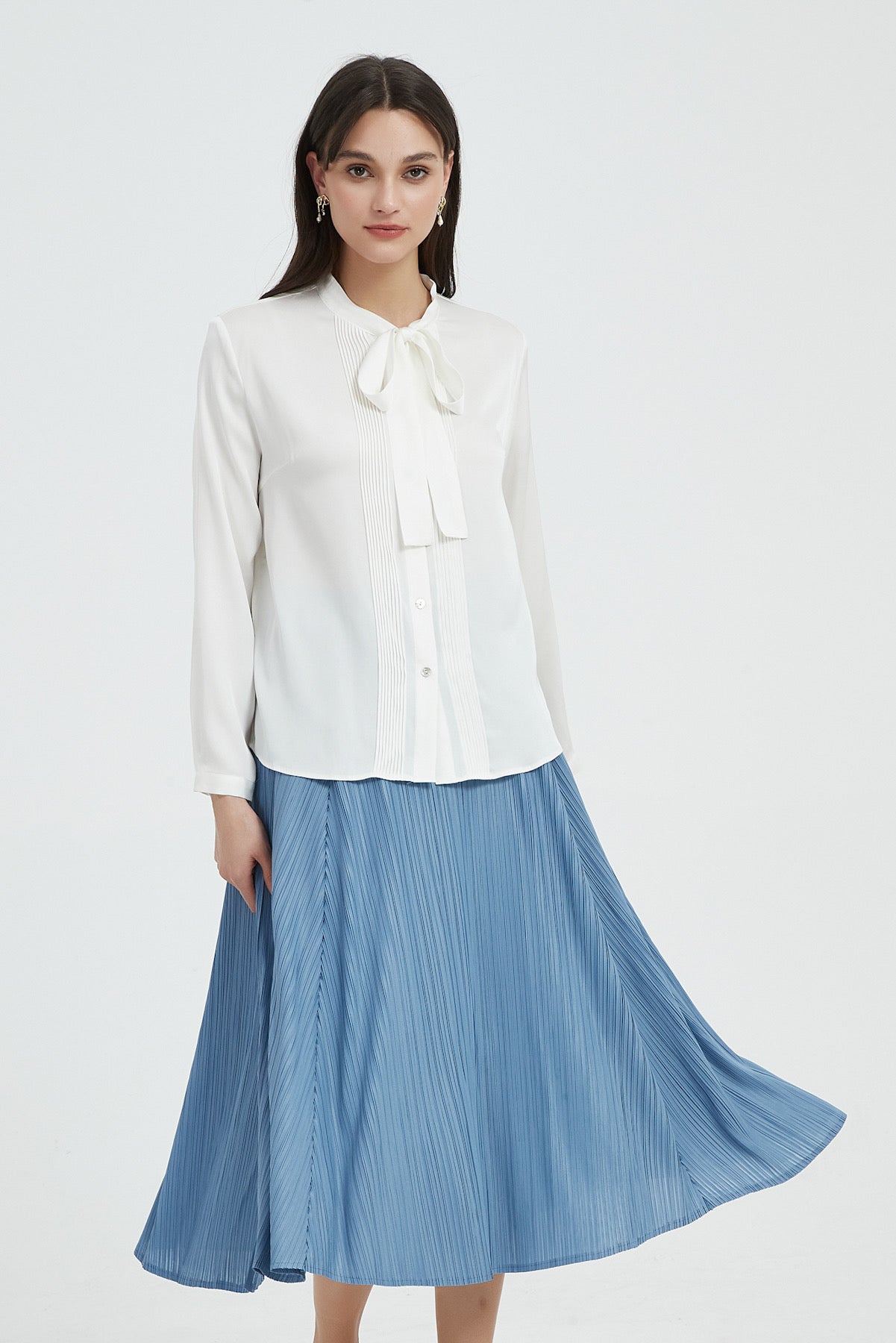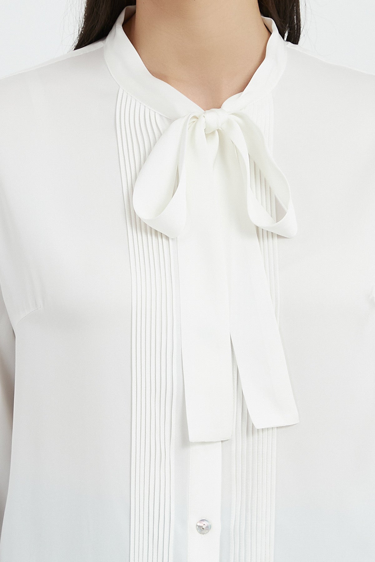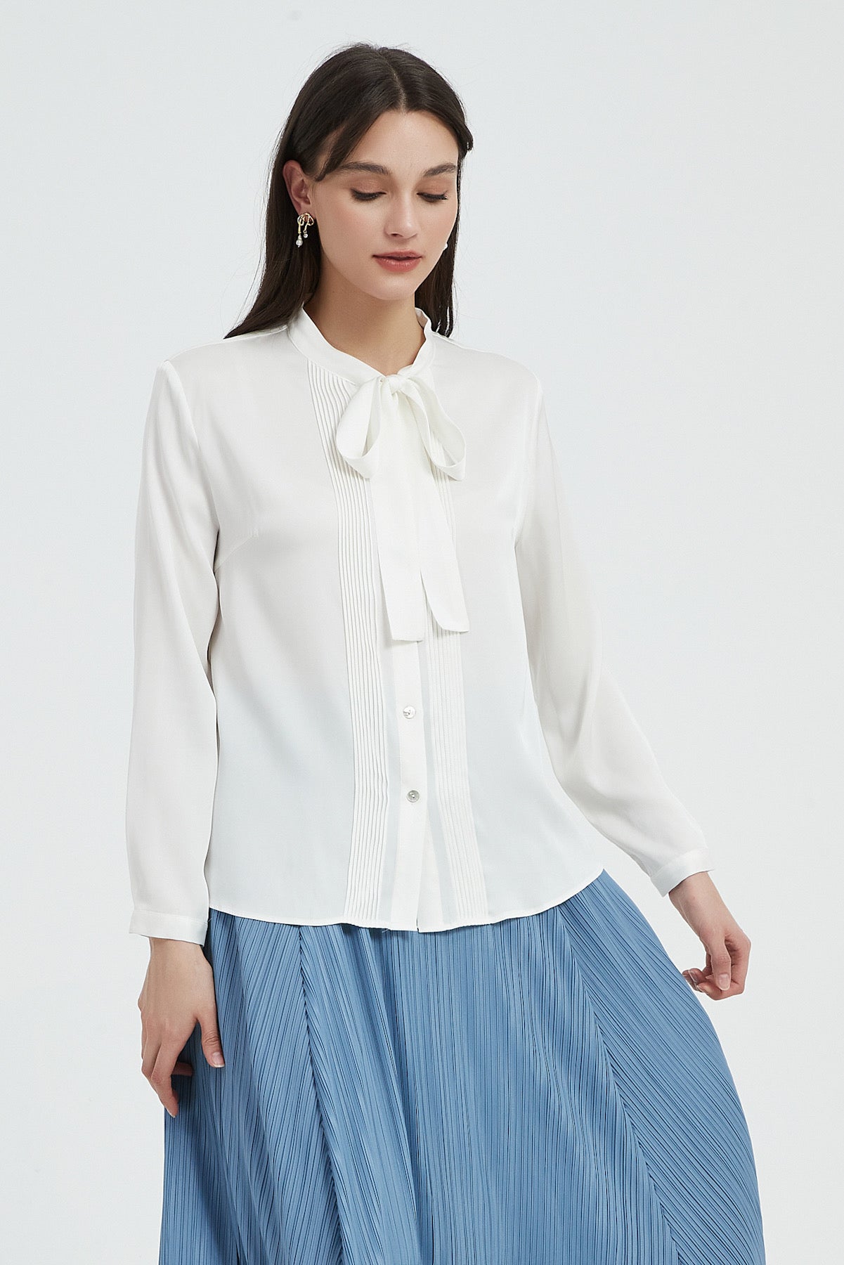 Elevate your wardrobe with our luxurious Fairleigh blouse, made from premium mulberry silk that drapes effortlessly. This feminine blouse features delicate pintuck detailing and a refined necktie, making it a chic choice for any occasion.