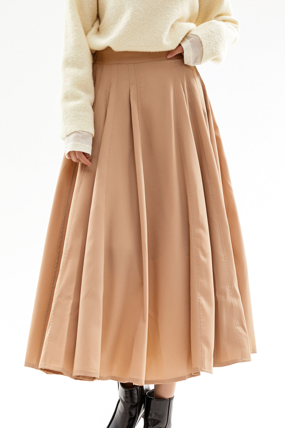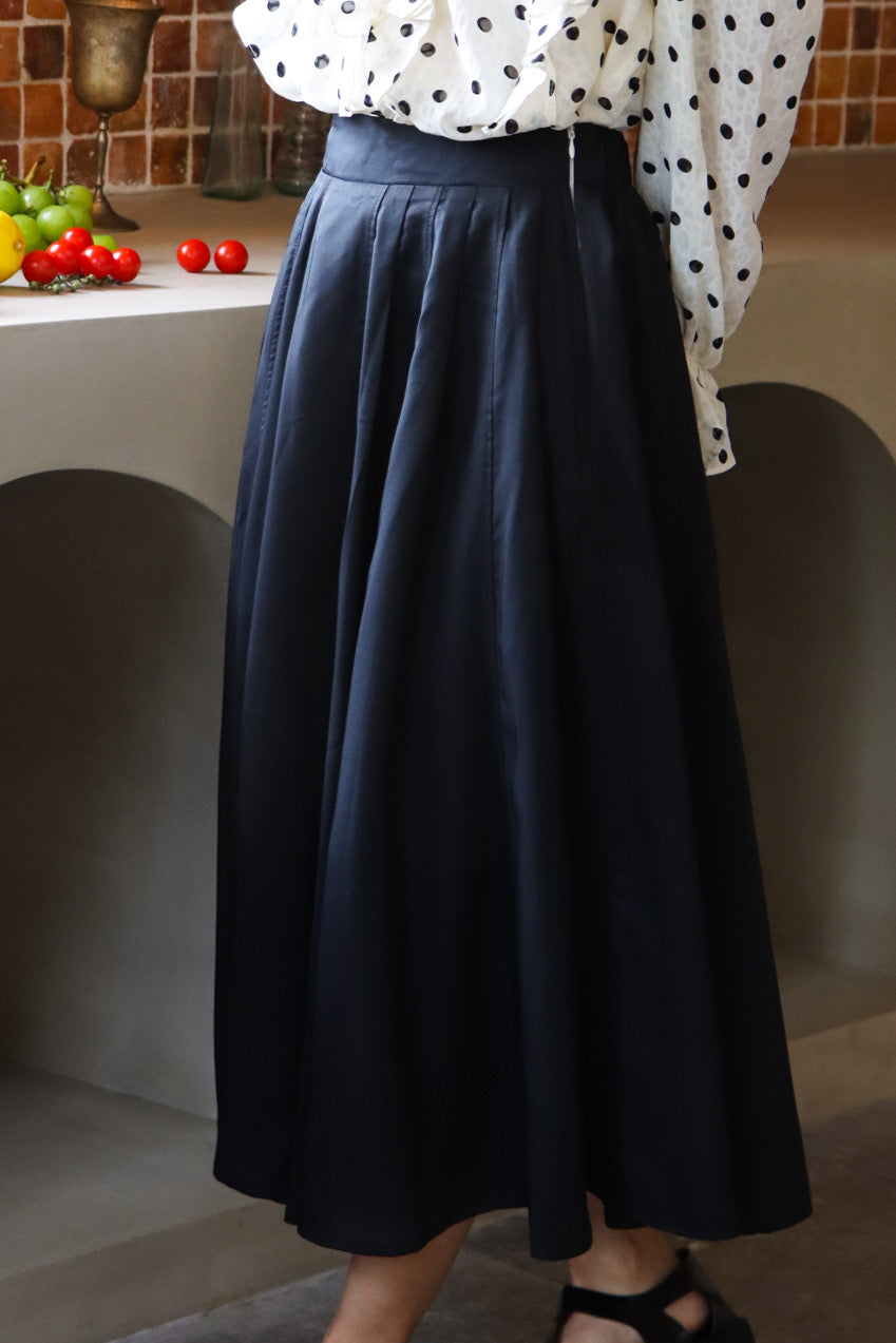Update your capsule wardrobe with our beautiful Janine skirt, featuring elegant pleats and a sophisticated A-line sihouette.