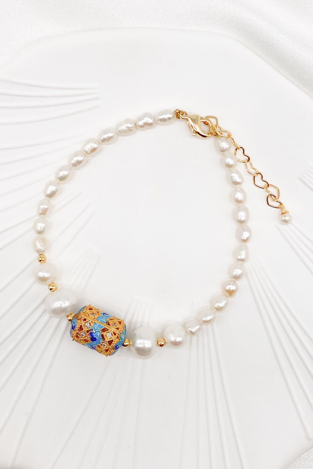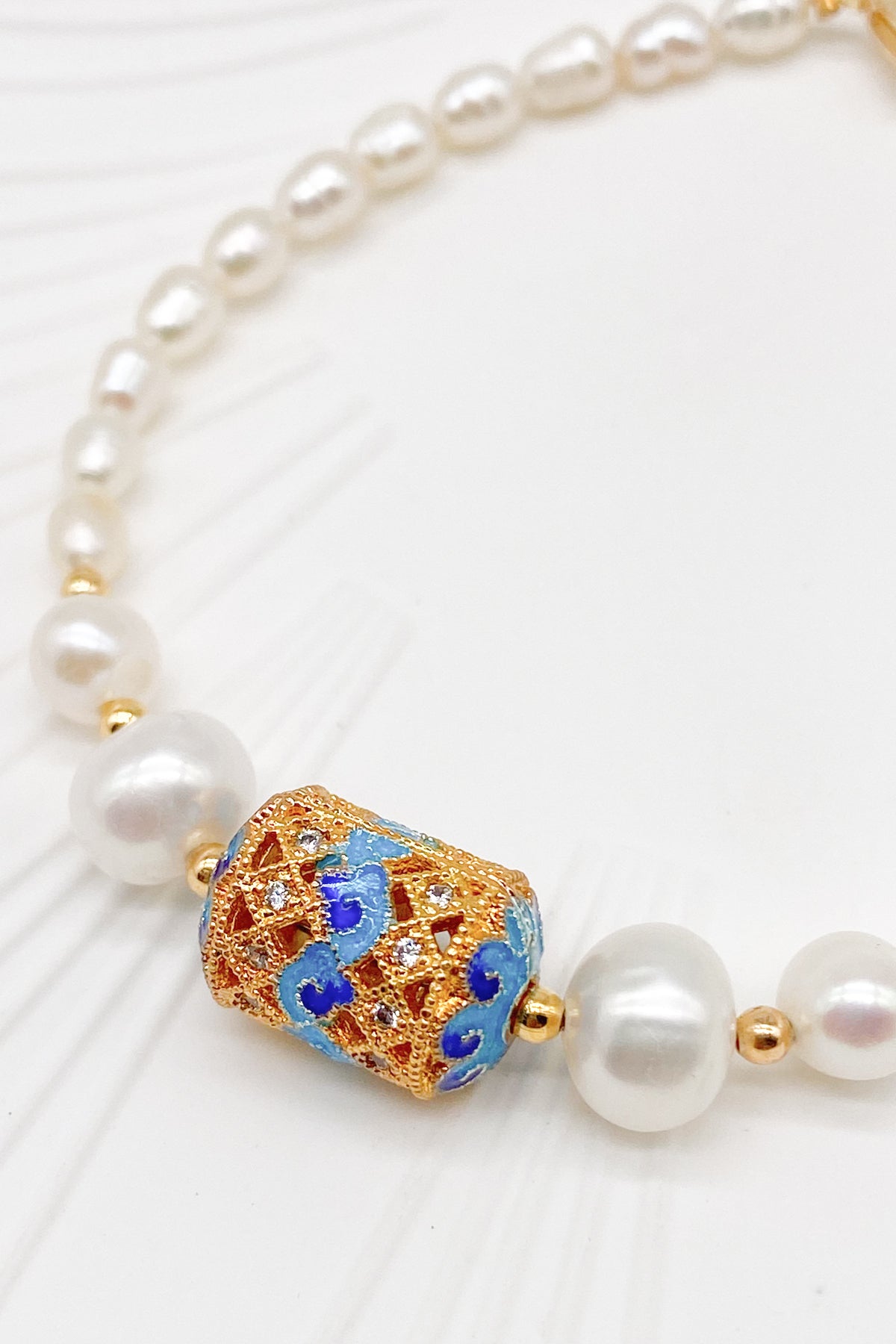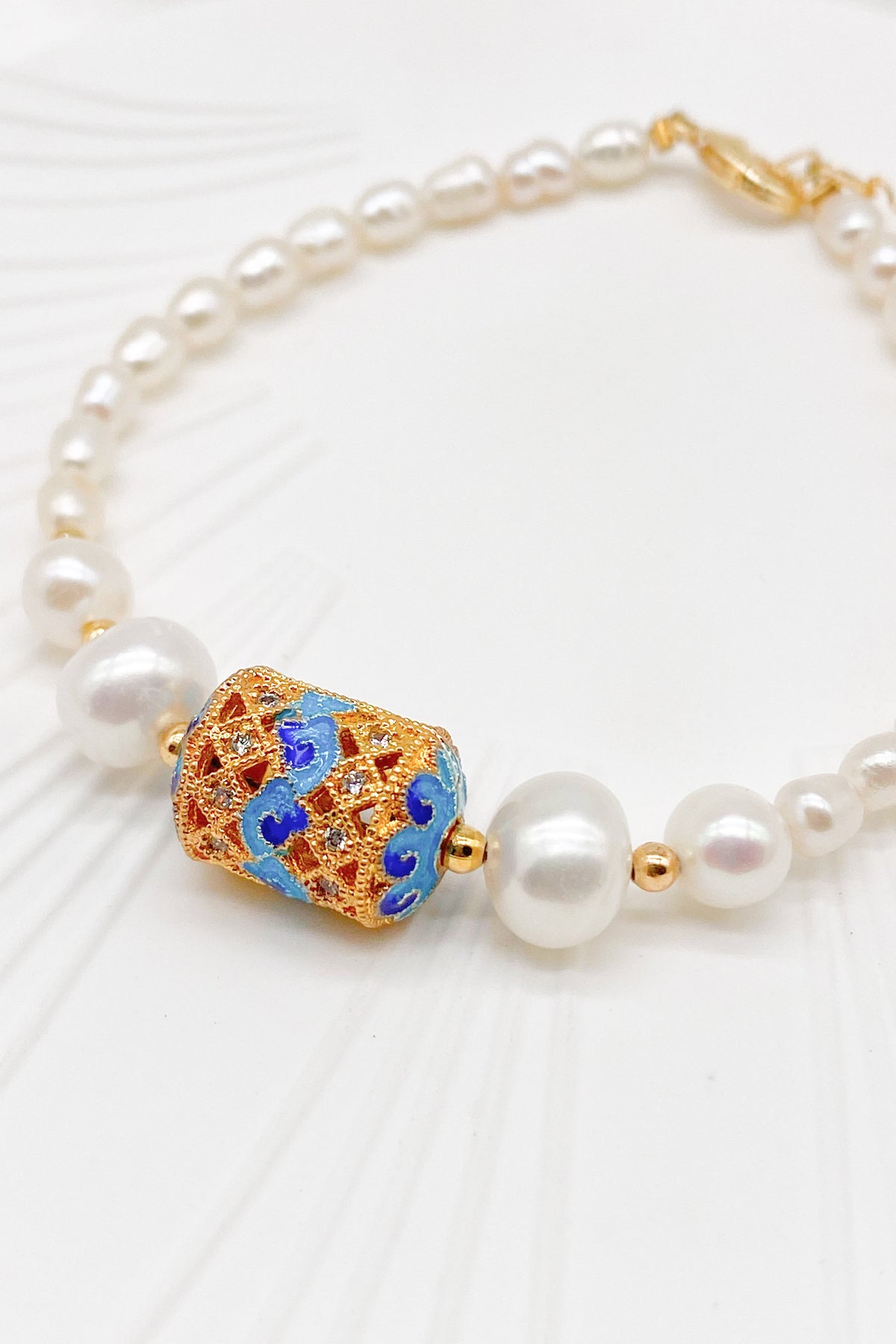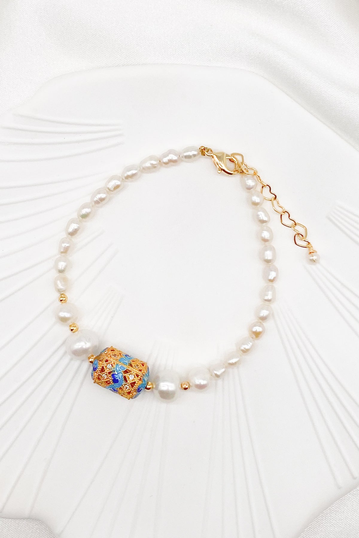 Showcase classic elegance with our beautiful Lorna bracelet, featuring delicate hand-painted enamel and refined freshwater pearls.