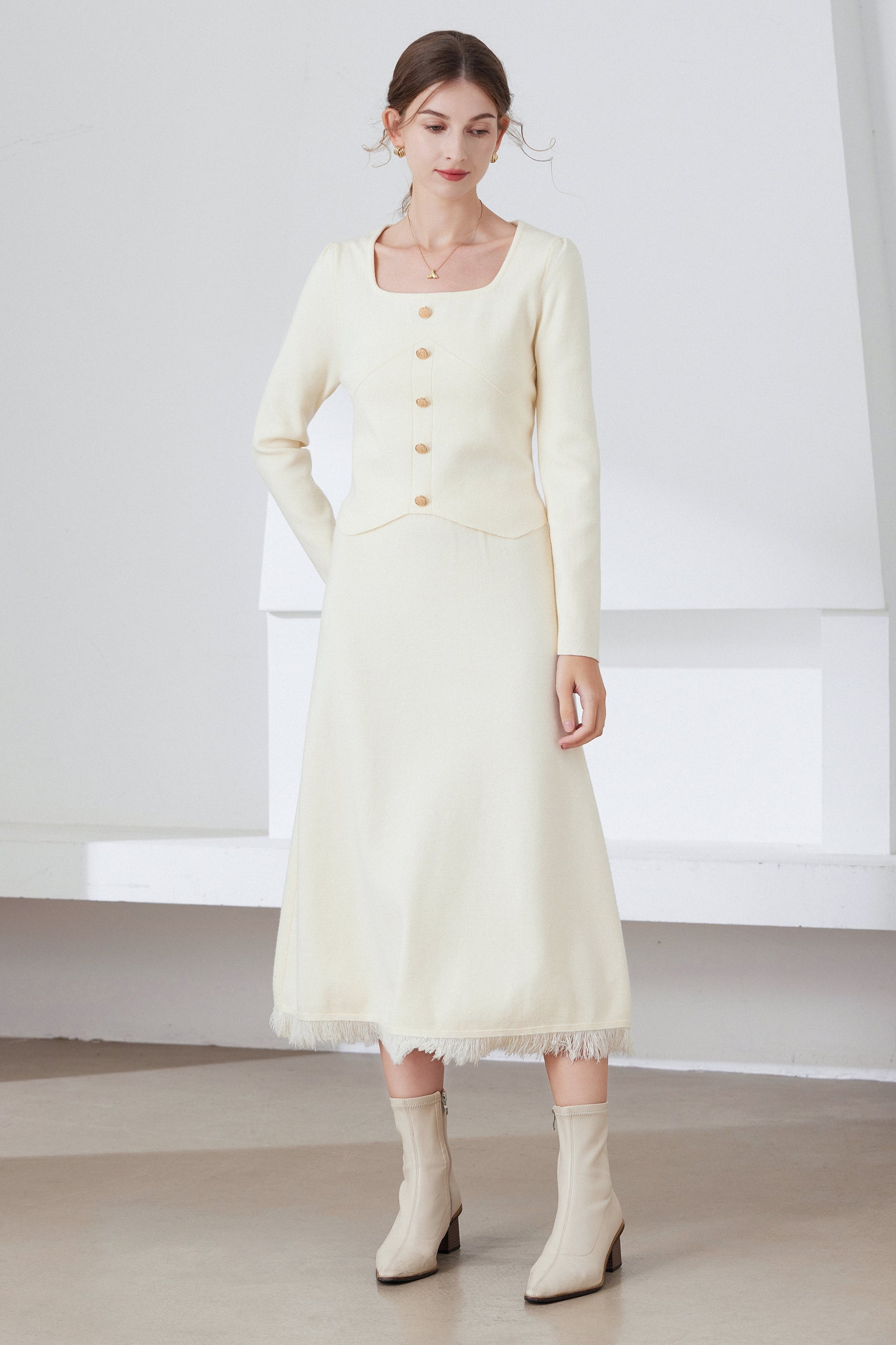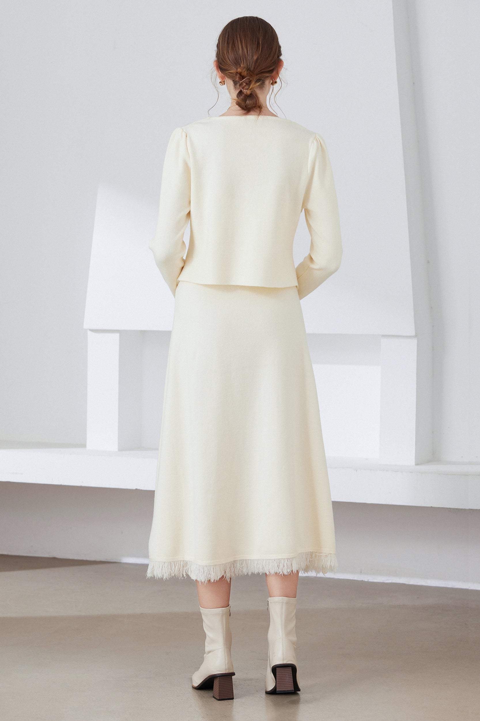 Lola Stretch Knit Fringe Hem Midi Skirt