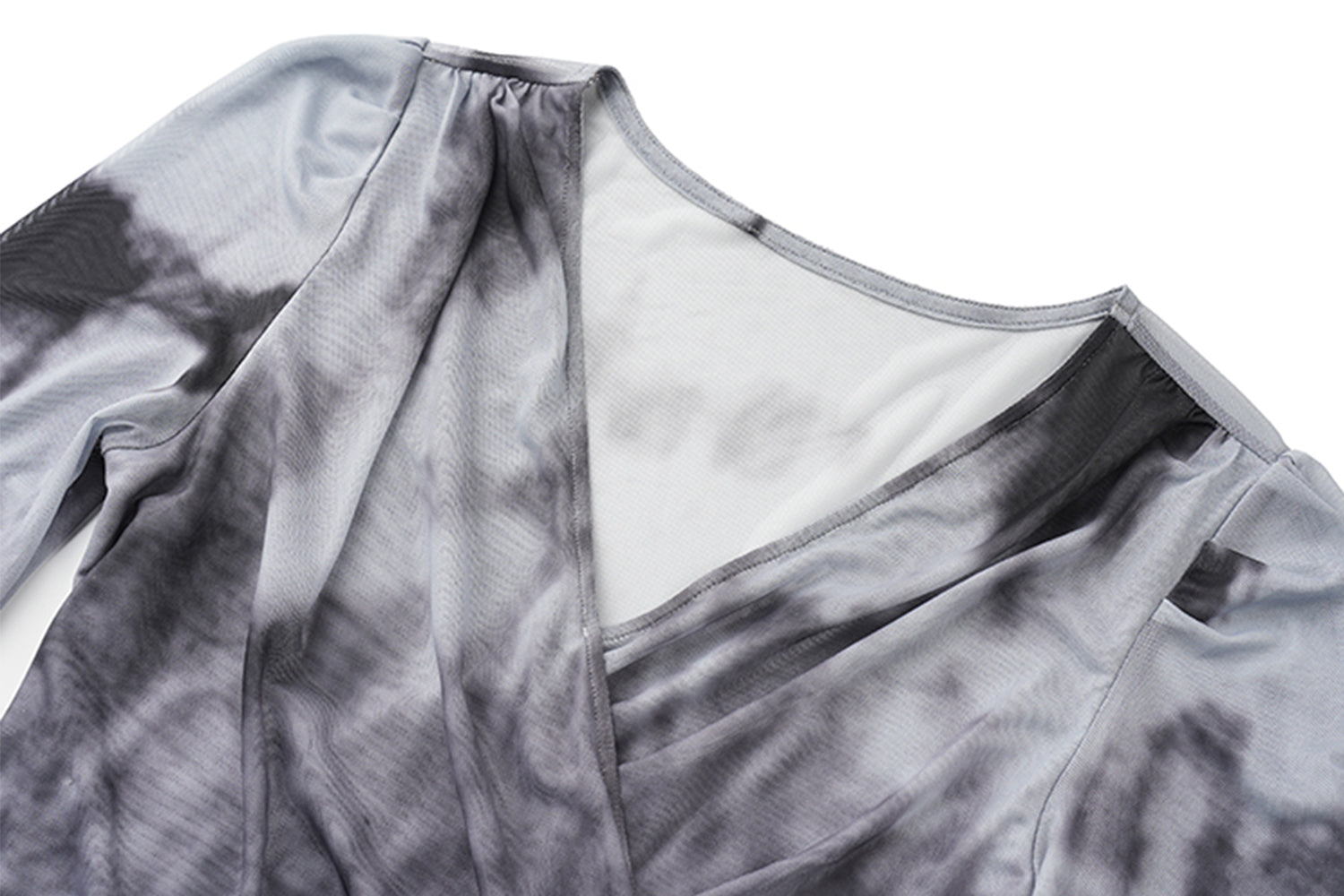 This chic, long-sleeve Yesenia top features a beautiful abstract print in shades of purple and gray. The wrap-style design adds elegance and creates a flattering silhouette, while the subtle ruched detailing enhances the waistline. Ideal for pairing with high-waisted pants or skirts for an effortlessly stylish look.